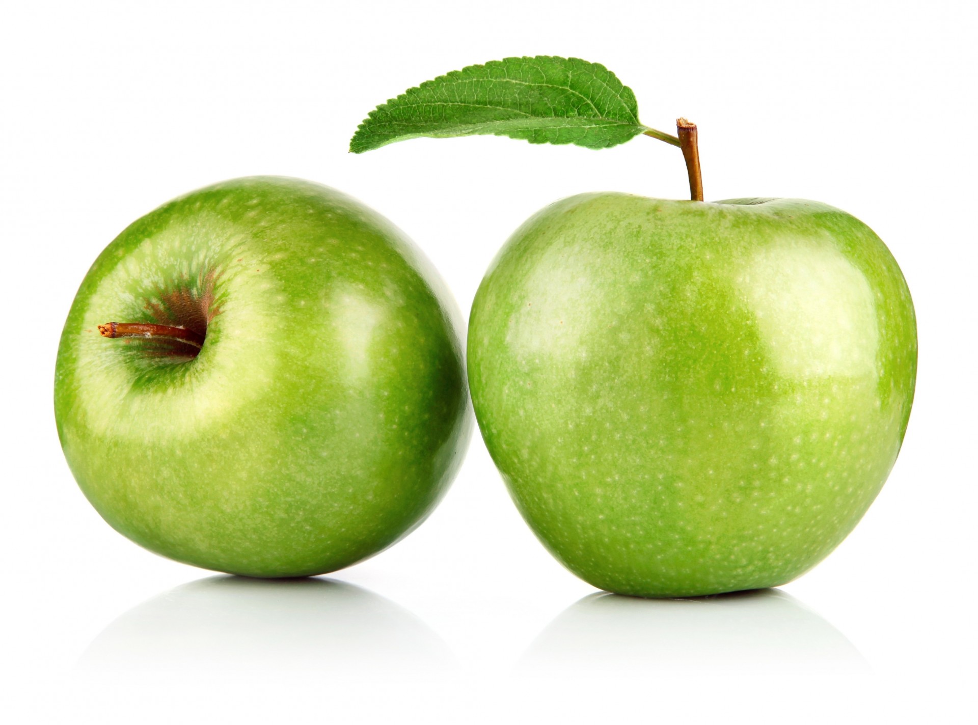 Su un foglio bianco, su uno sfondo bianco mela luminosa
