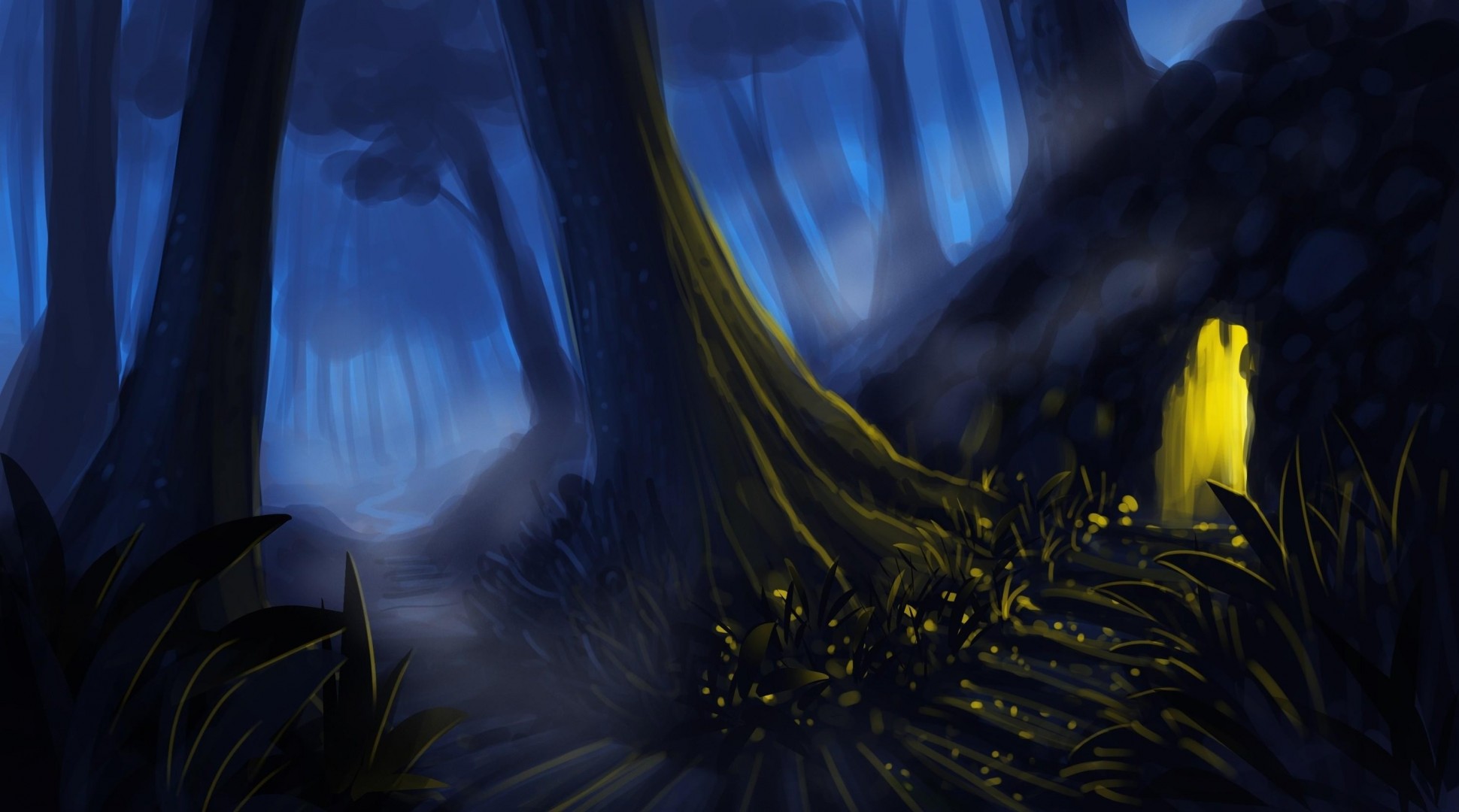 Nella foresta nell'albero c'è un ingresso e c'è una luce