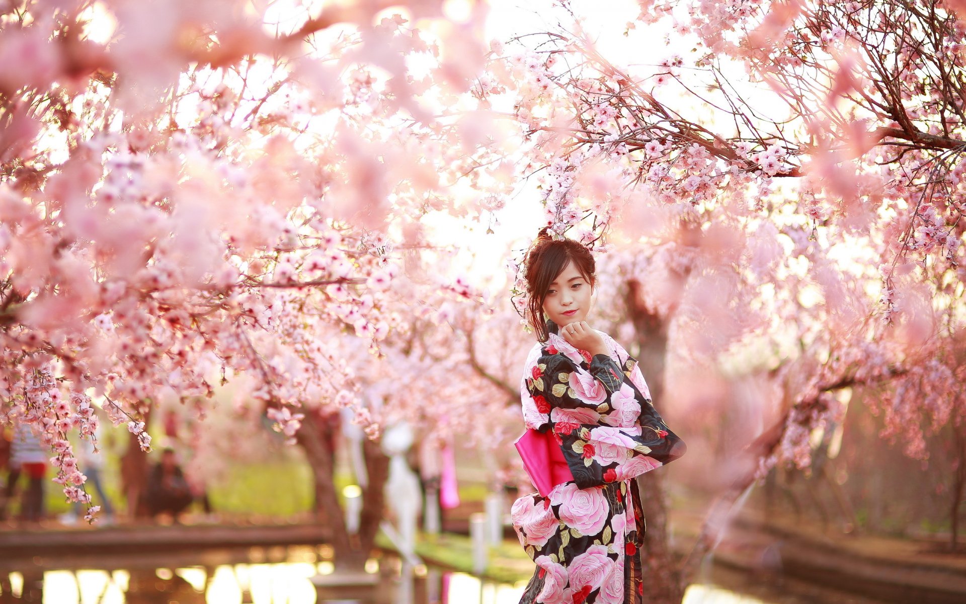 Arte rosa piccolo pony in piedi sotto un albero con un ombrello