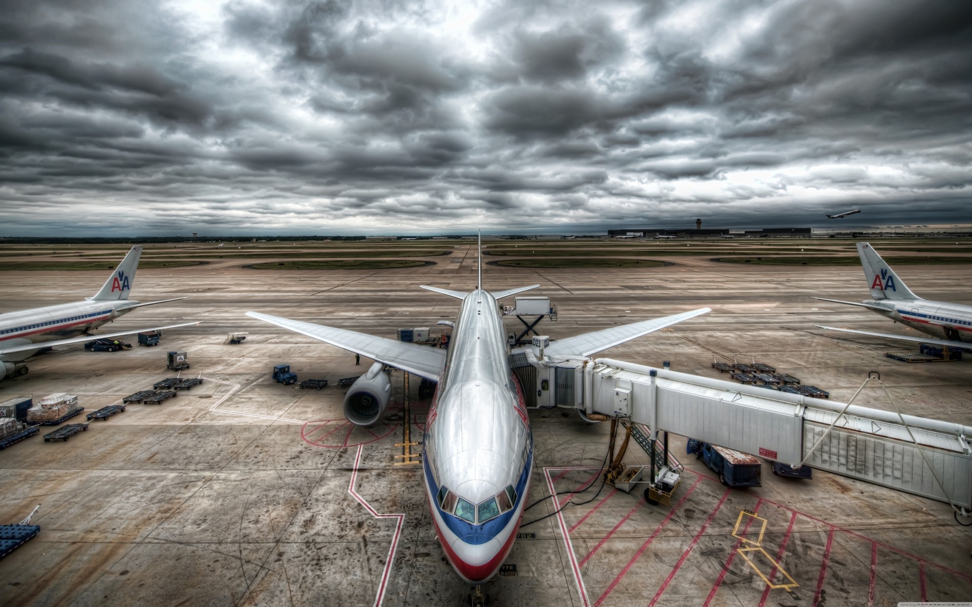 Un aereo si imbarca su una striscia sullo sfondo di un bellissimo tramonto