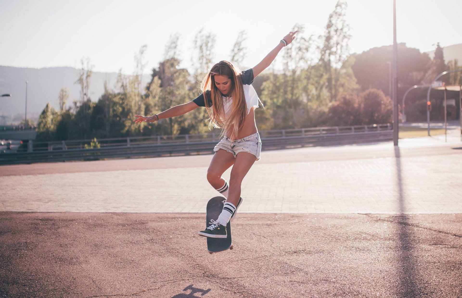 Bella ragazza sportiva su uno skateboard