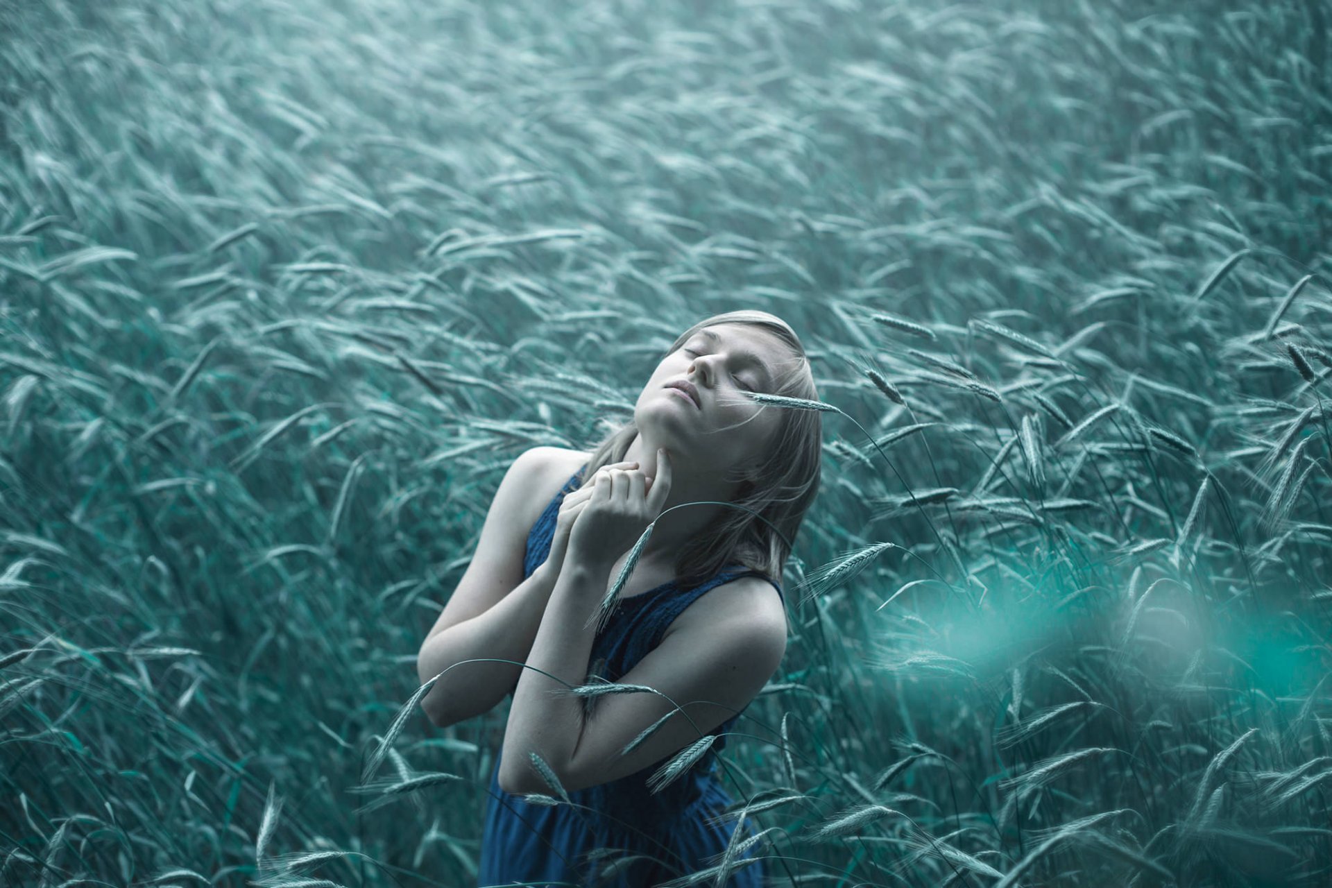 Ragazza nel campo. Spighe