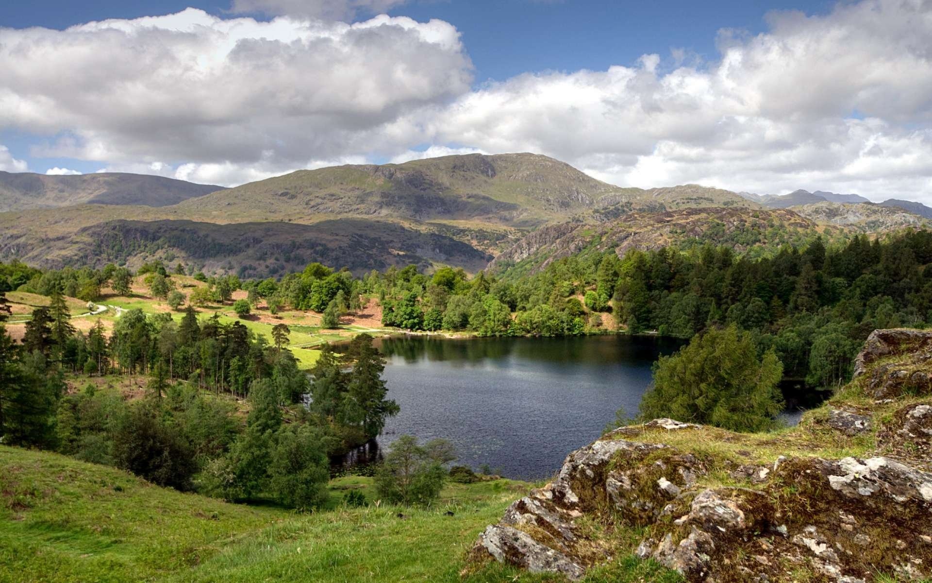 Paesaggio mozzafiato. Lago, montagne, foresta