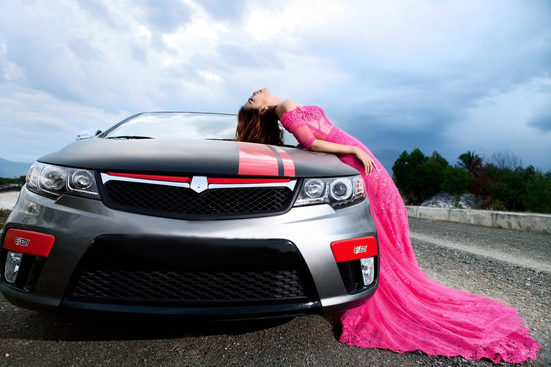 Canzoni sotto la chitarra su una radura verde ragazza asiatica