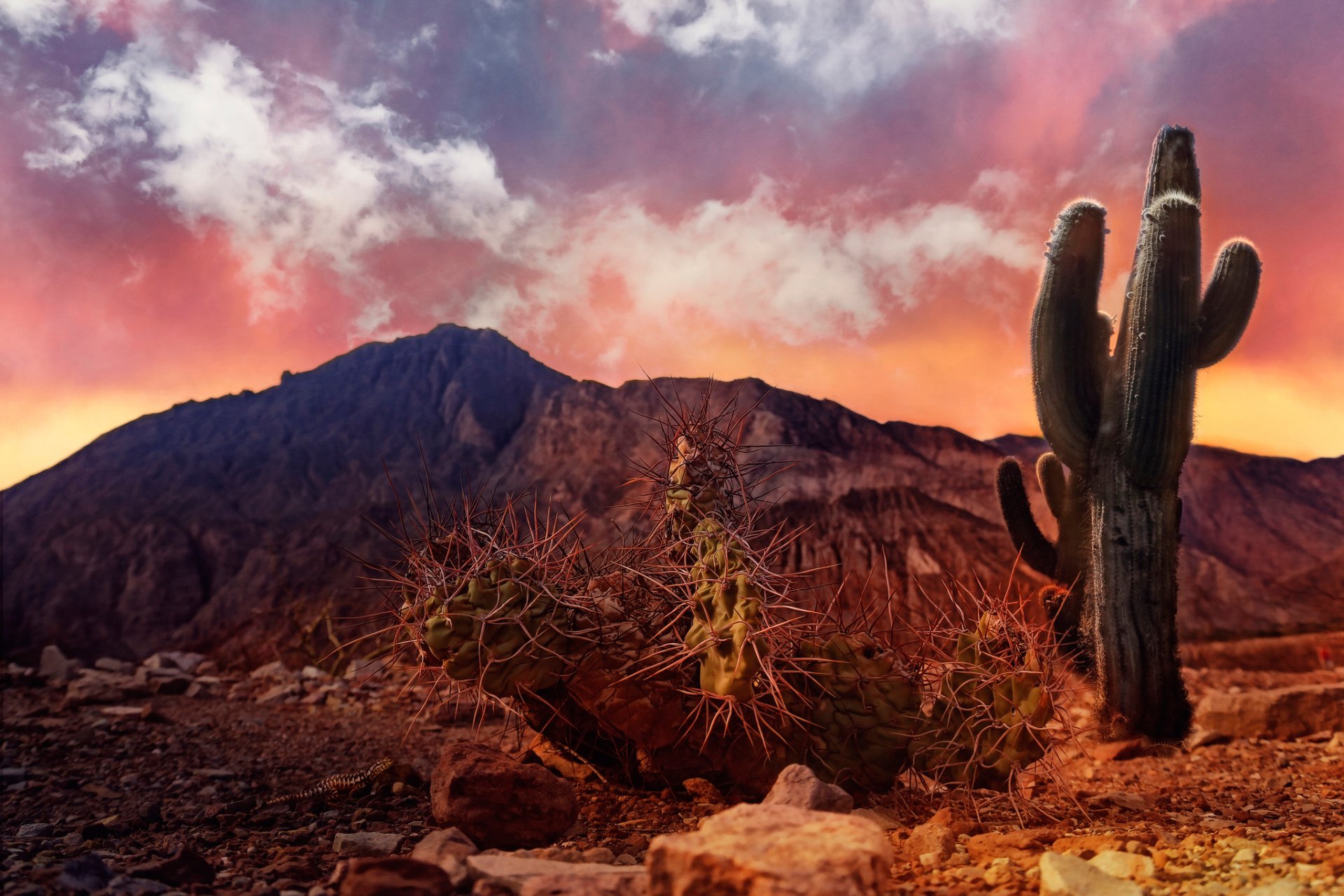 Cactus nel deserto, vivo e appassito