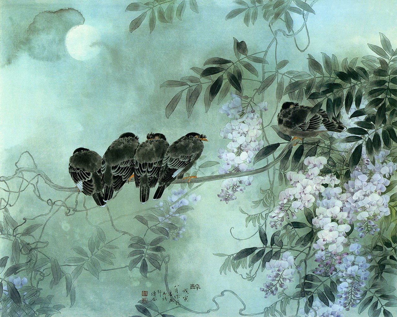 Luna. Uccelli su un ramo