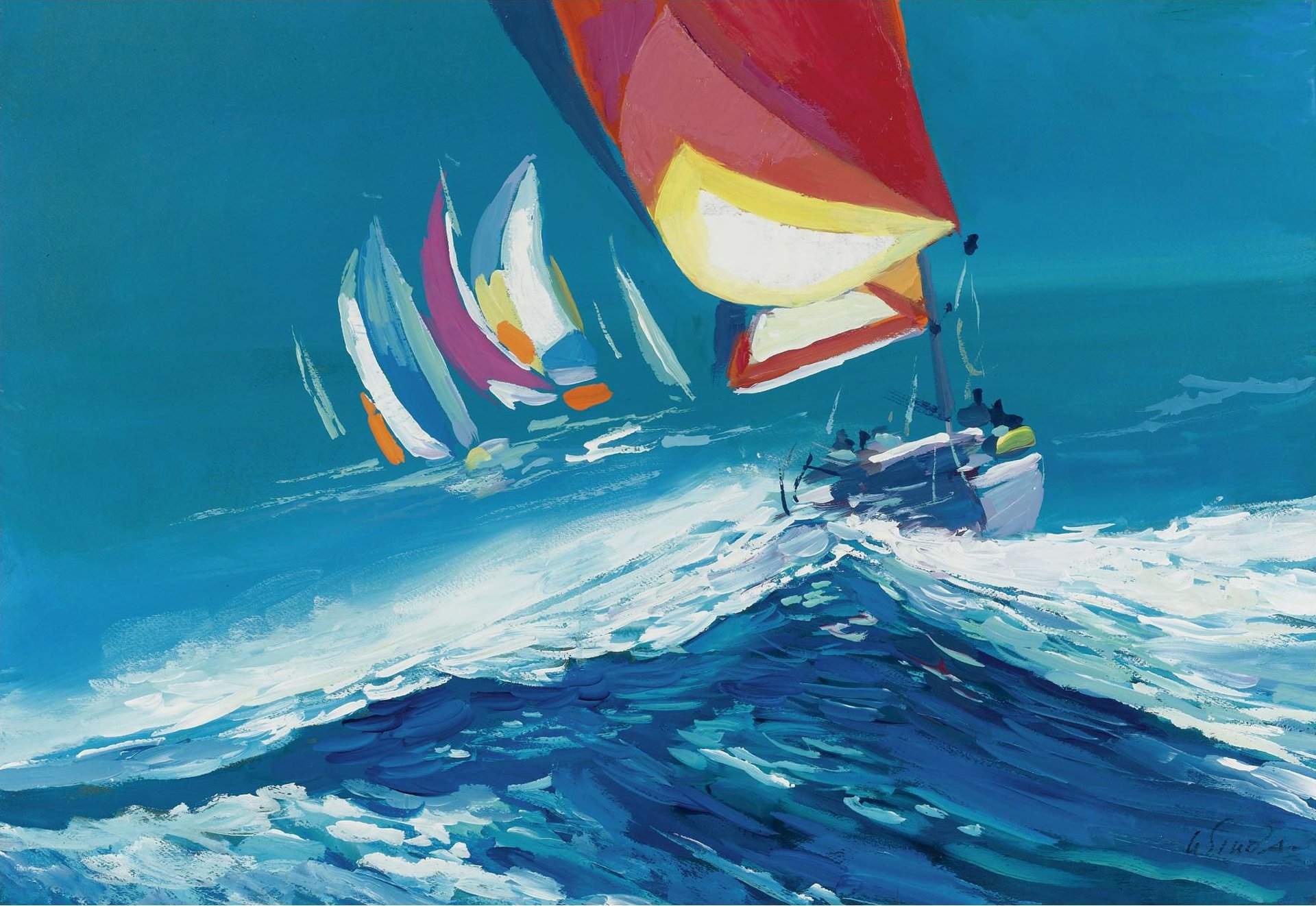 Modello degli yacht che corrono in una striscia