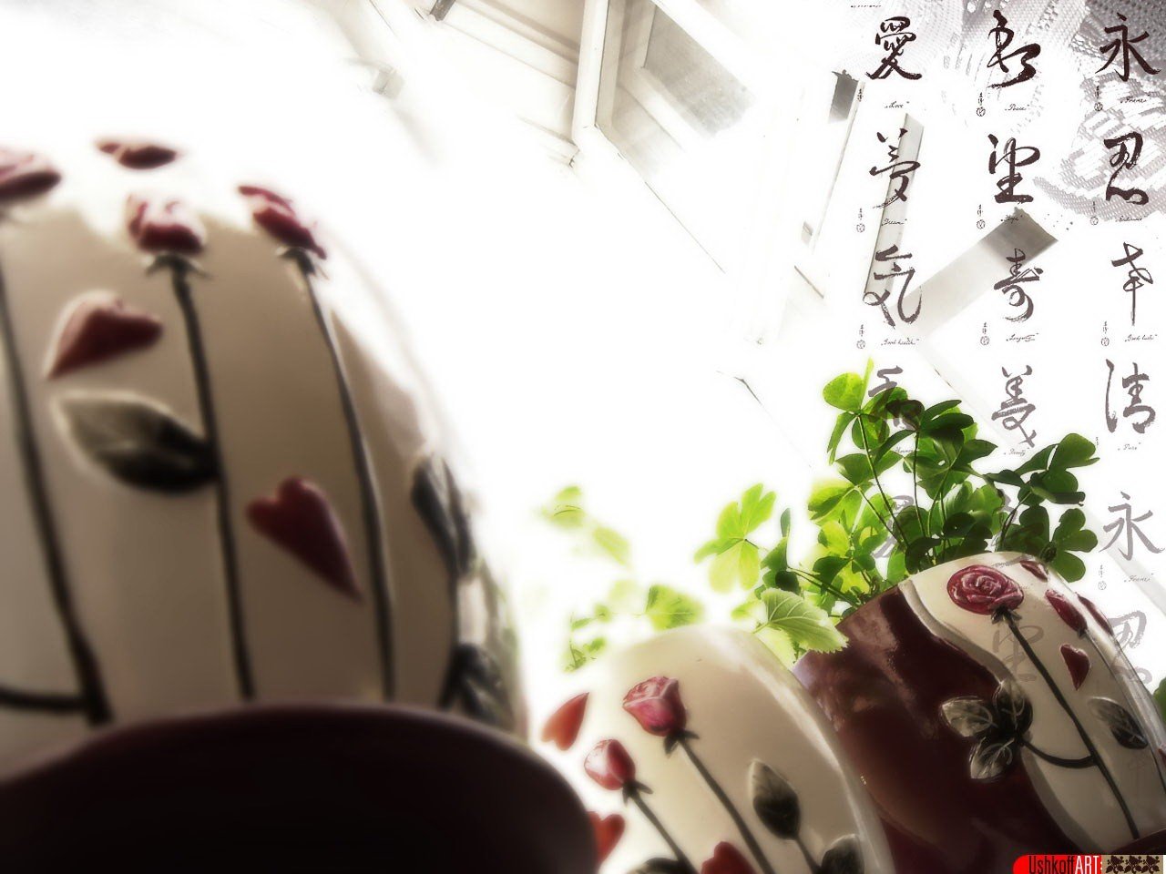 Vasi di fiori dipinti sulla finestra