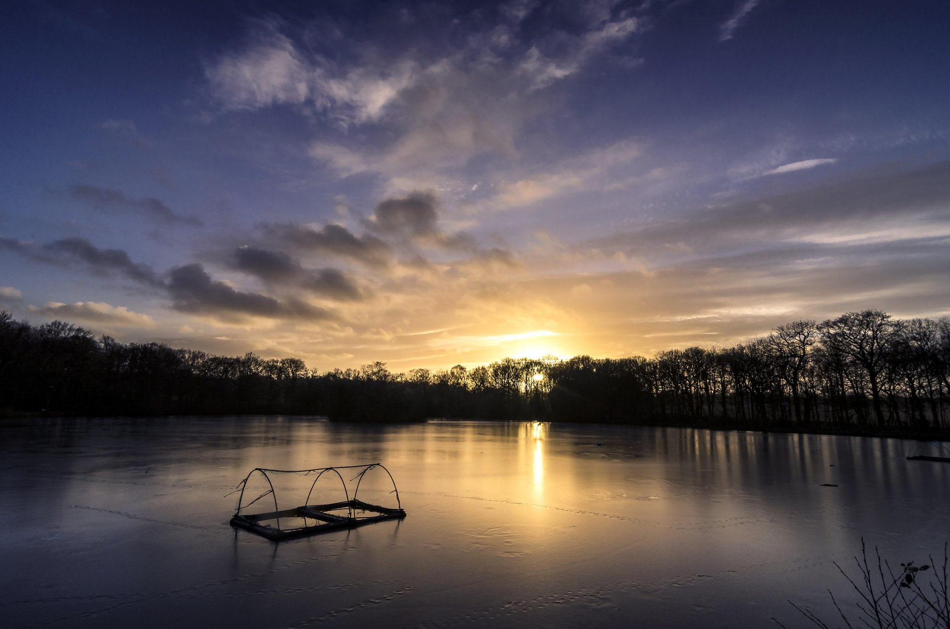 Fiume, foresta, alberi, cielo, nuvole è la natura
