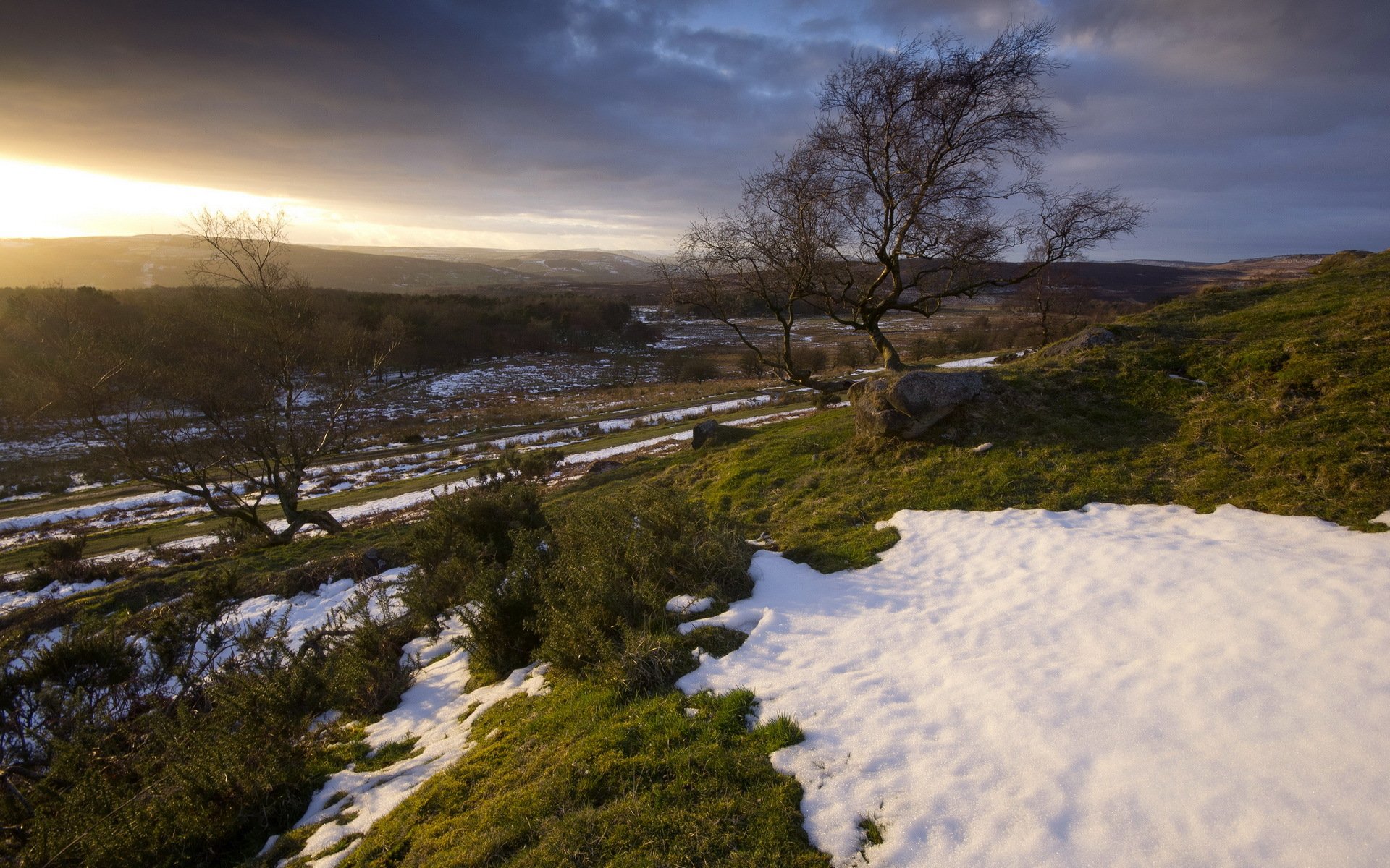 Resti di neve bianca sul campo