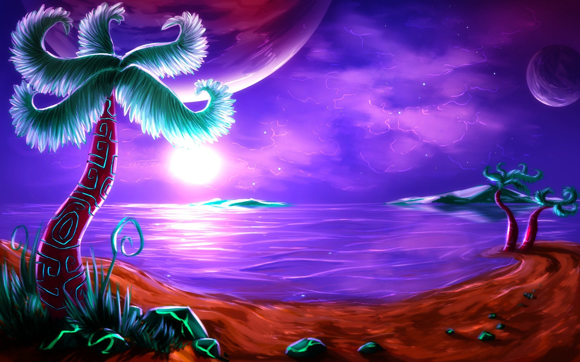 Luoghi colorati sul pianeta sulla riva del mare tra le palme
