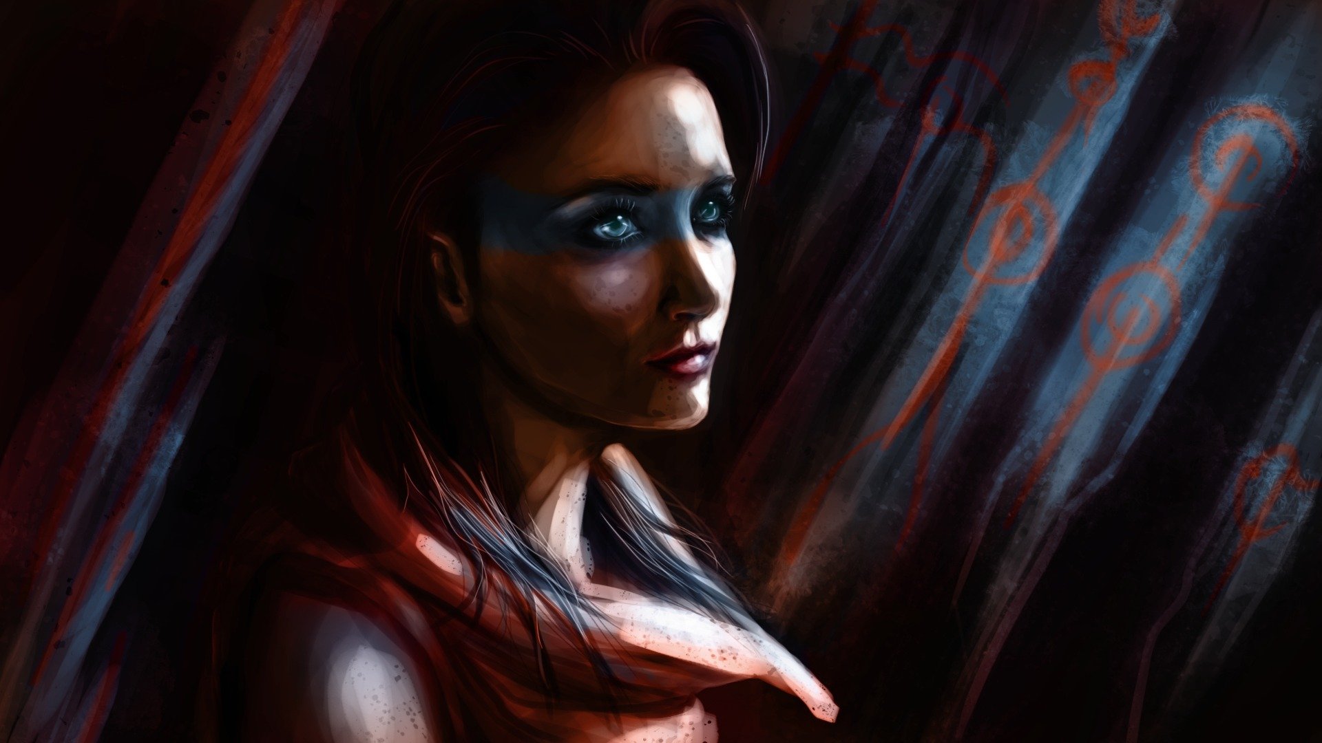 Ritratto di una ragazza con i capelli rossi e gli occhi azzurri