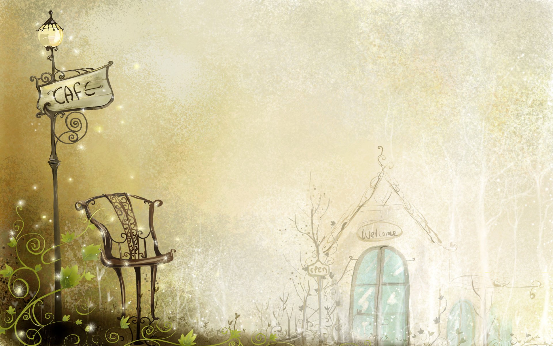 Disegno di un ombrello di fronte a un caffè con fiori in vasi