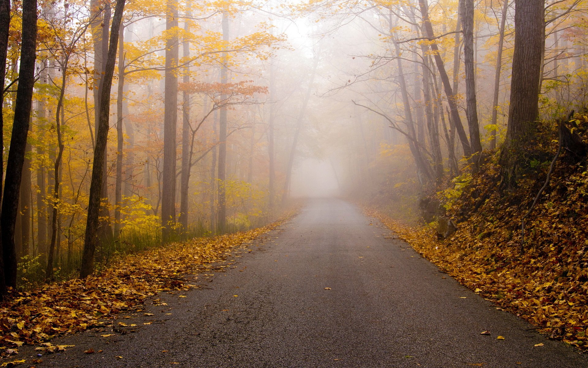 Paesaggio della foresta nebbiosa autunnale