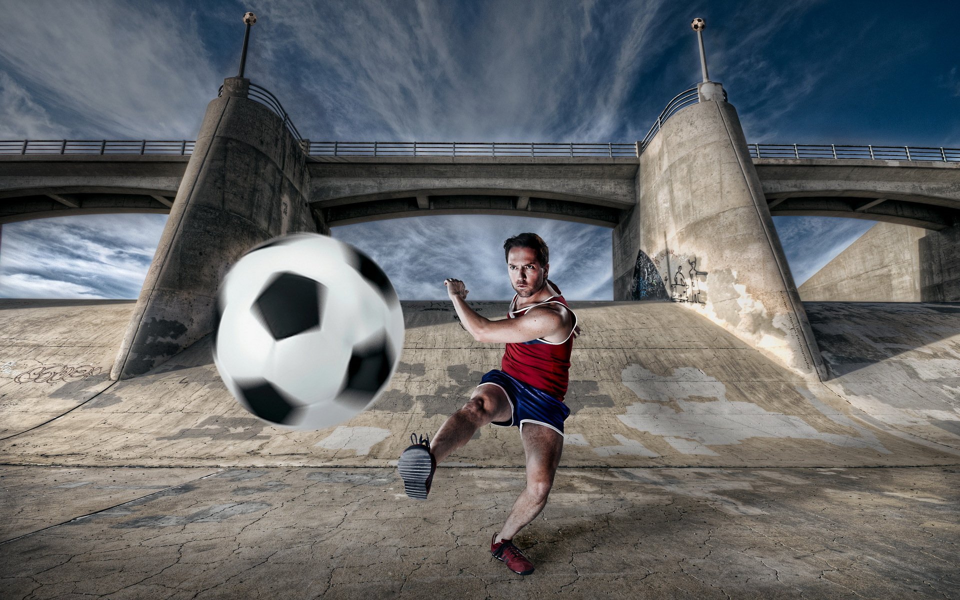 Uomo dalla pelle scura con la palla in mano in uniforme rossa