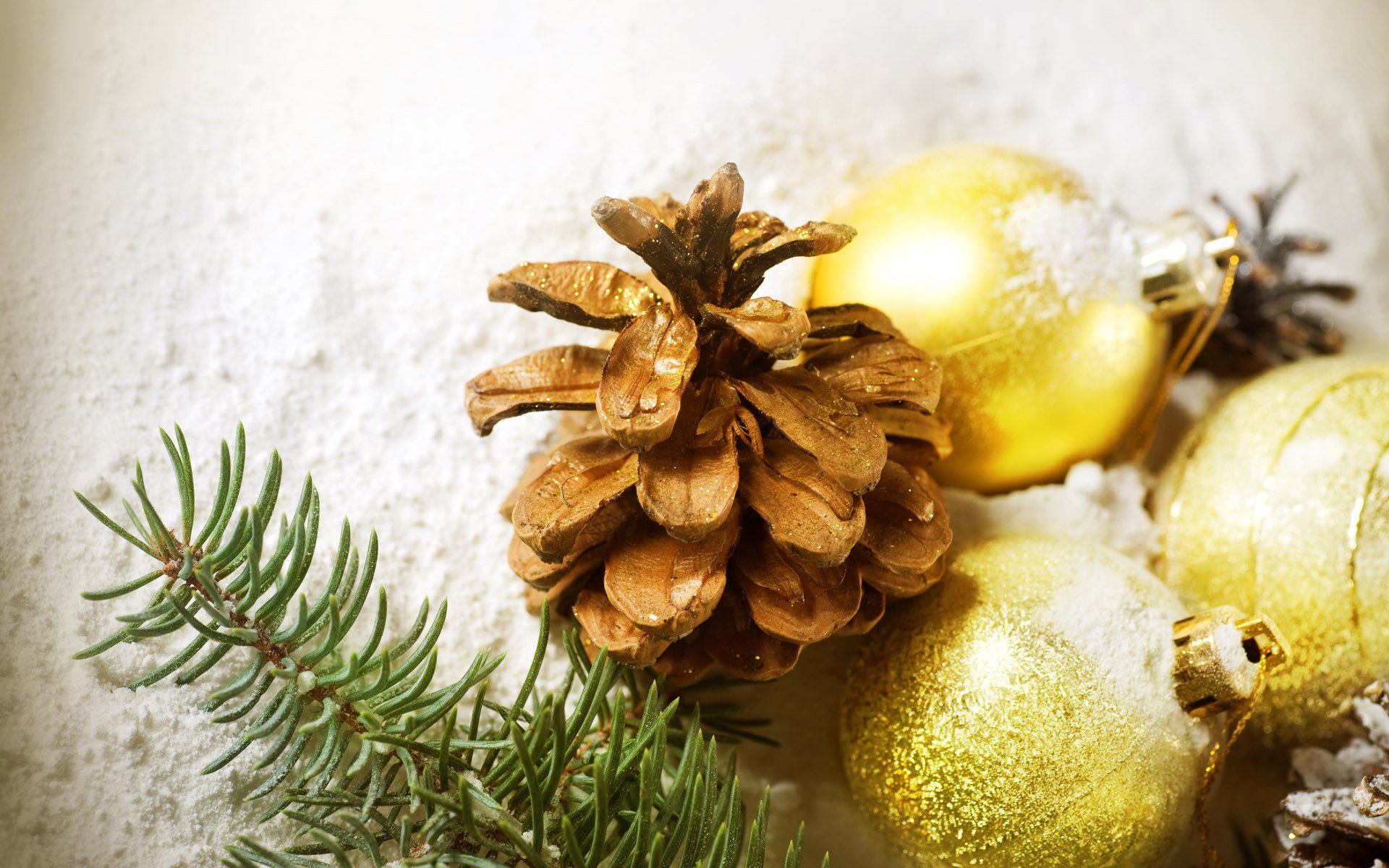 Albero di Natale, cono, neve e palle di Natale