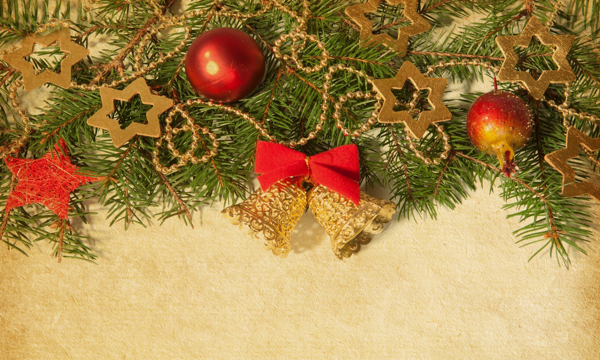 Carta da parati natalizia con perline, palle, scintille