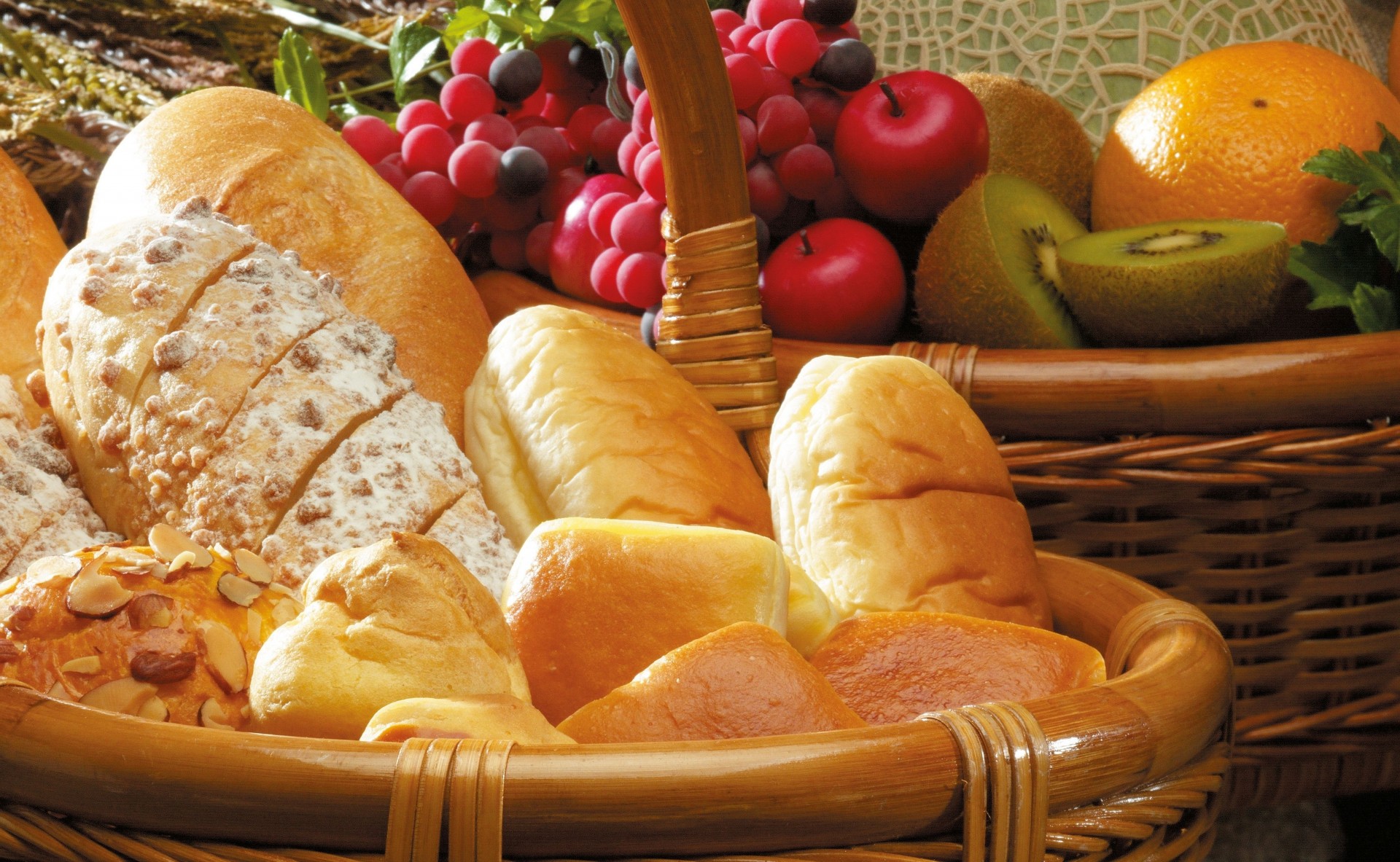Prodotti a base di carne e verdure con pane su tavola di legno