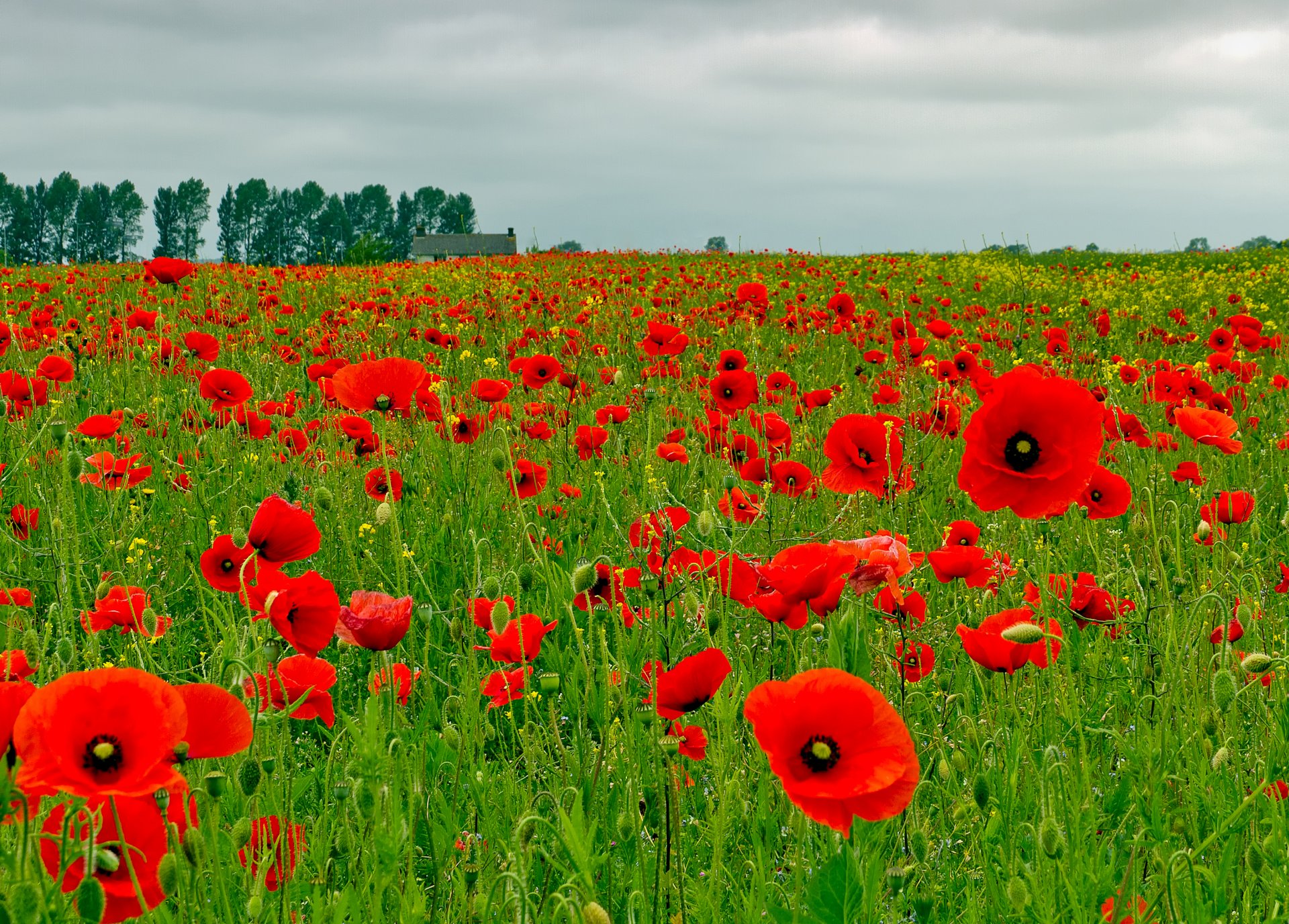 Enorme prato di papaveri, campo di fiori