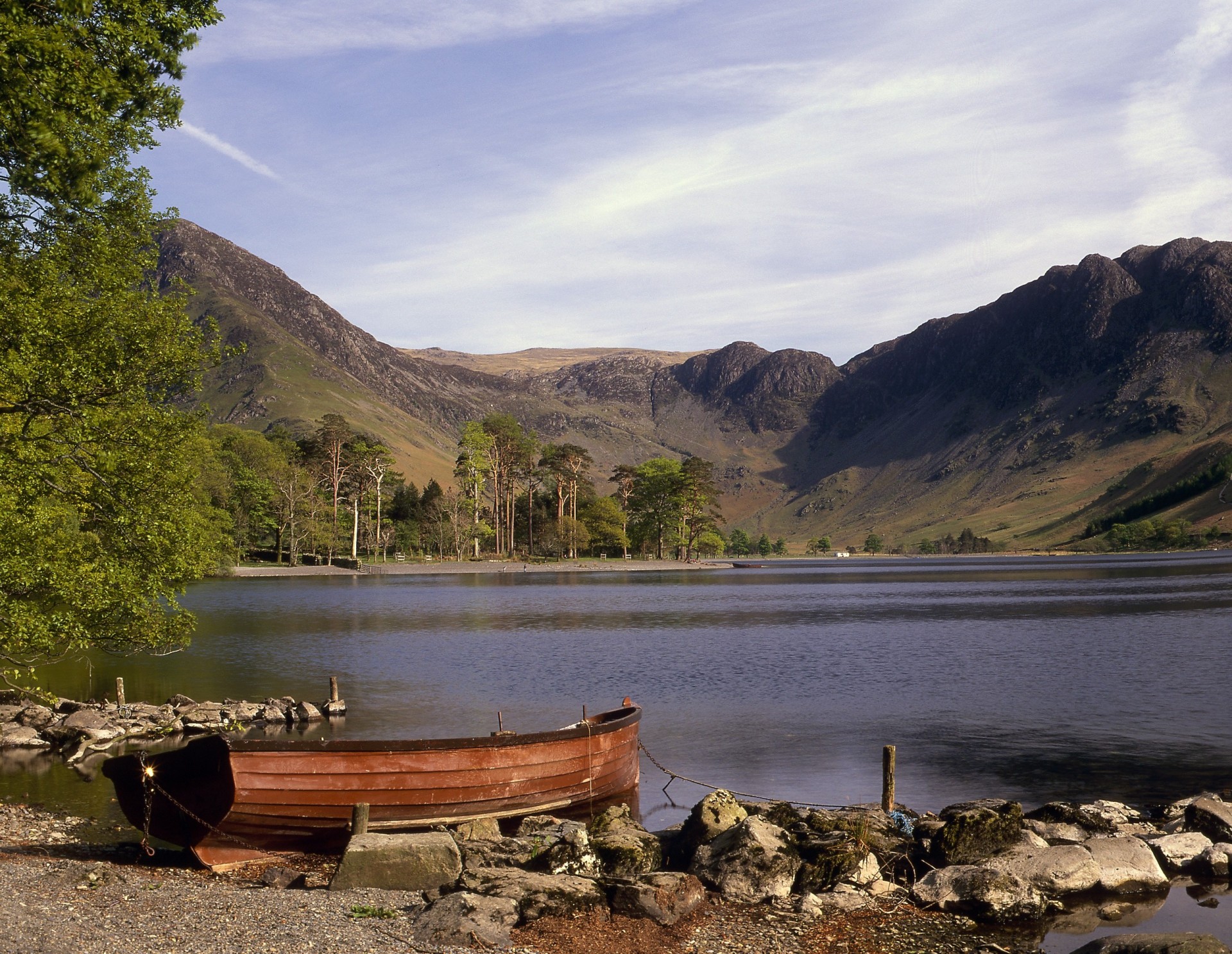Paesaggio del lago al tramonto sullo sfondo dell'albero