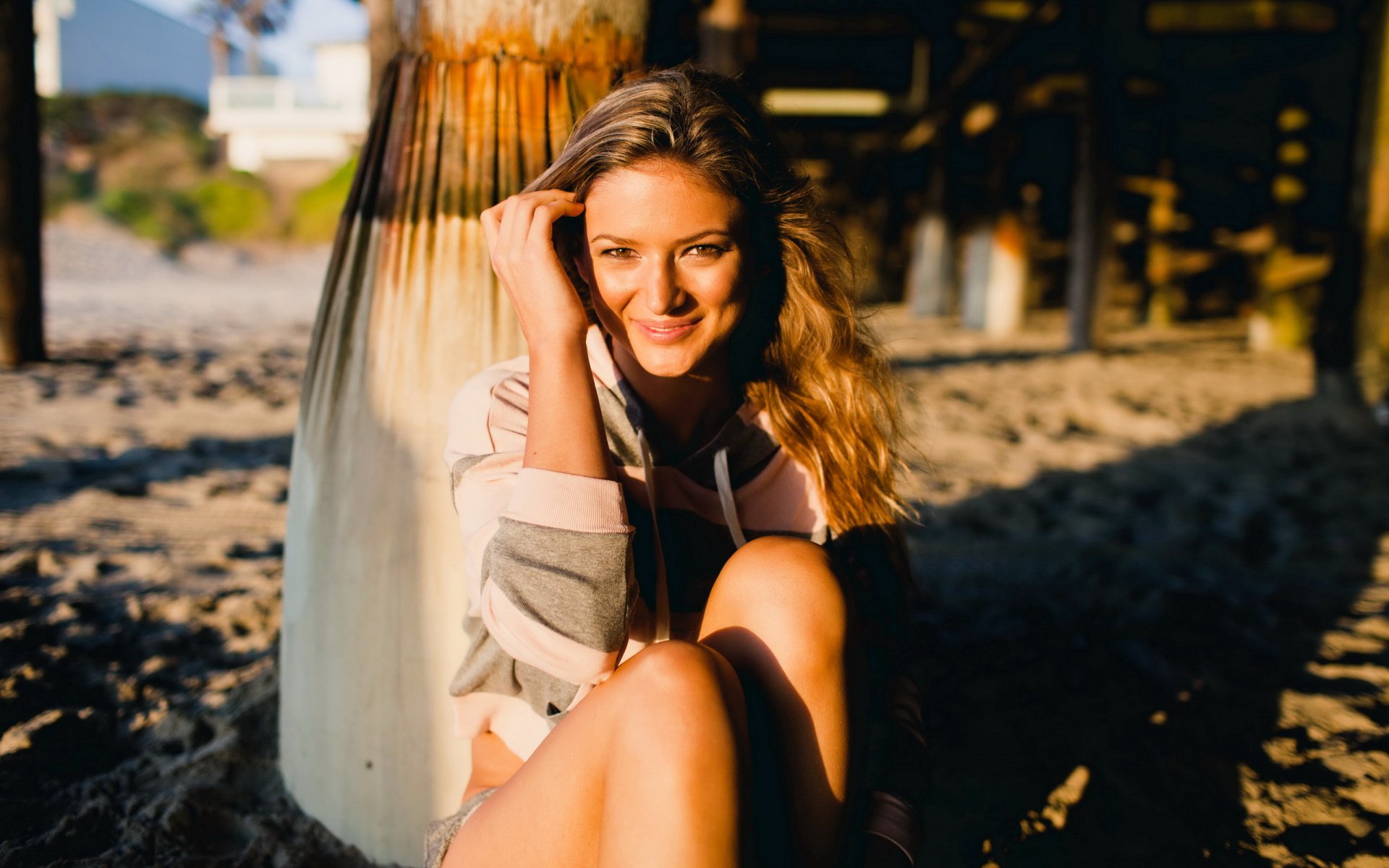 Ragazza sorridente sulla spiaggia al sole