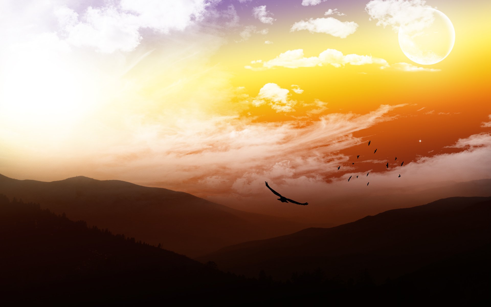 Uno stormo di uccelli che volano attraverso la bellezza più elegante del cielo