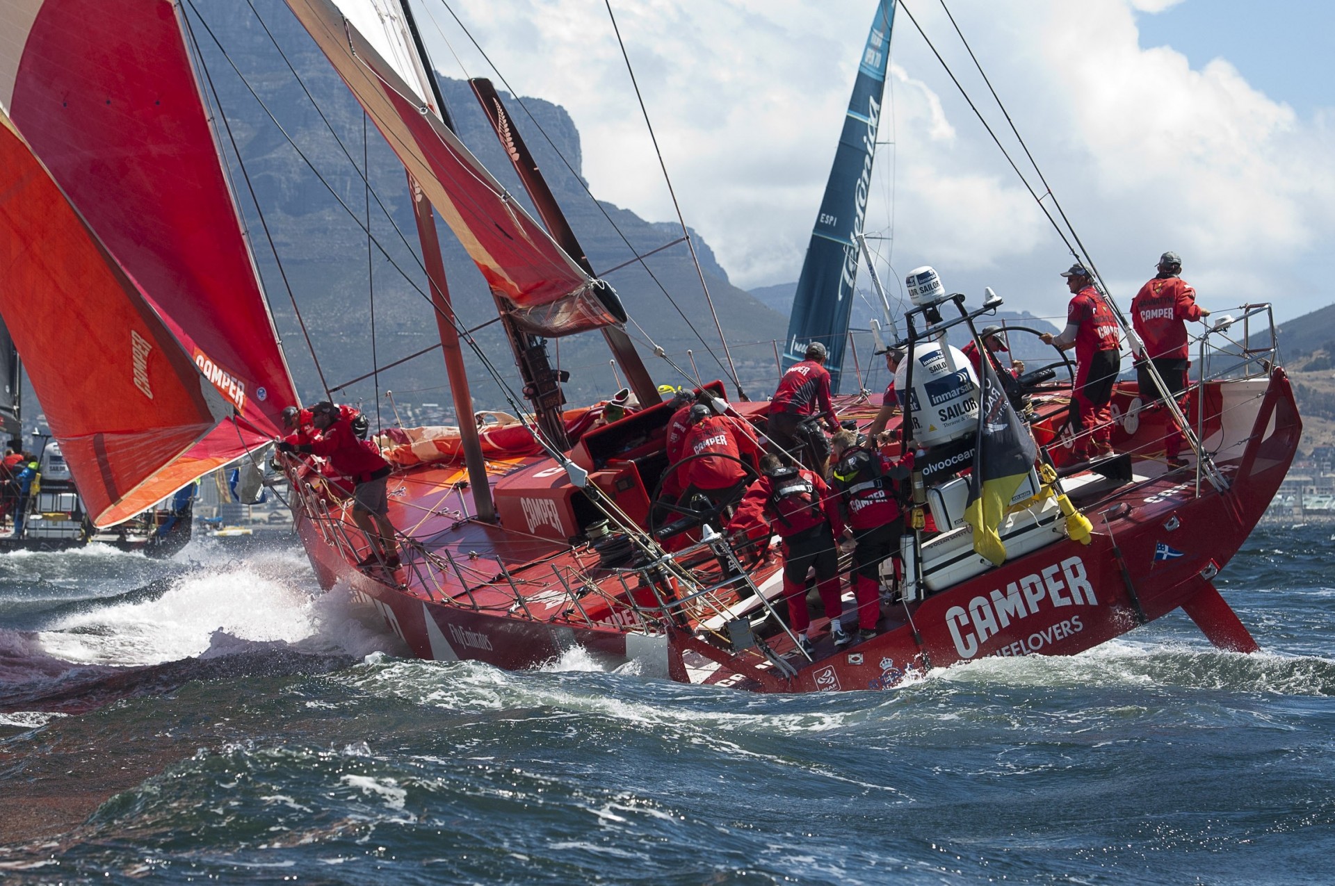 Persone su uno yacht di colore rosso in mezzo all'oceano