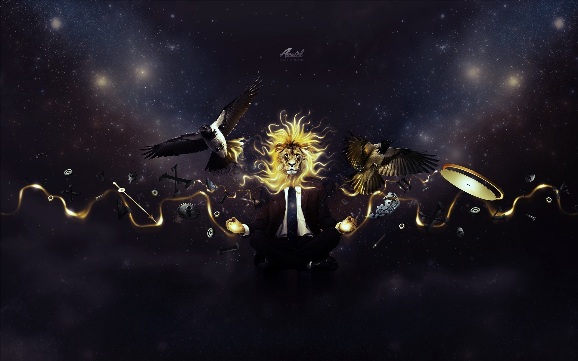 Un leone si riposa sull'erba in attesa della sua femmina in modo che venga a dire qualcosa