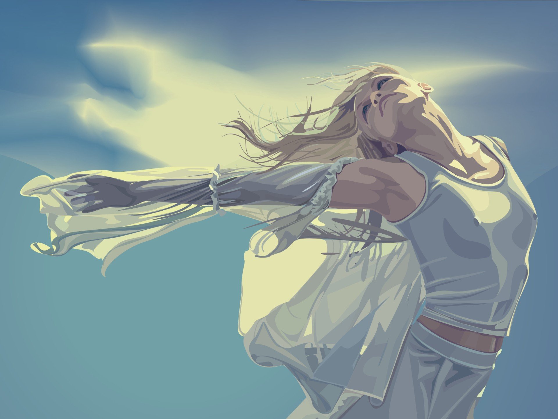 Bella Cowgirl in abito rosso in sella a un unicorno bianco come la neve in fantasy land