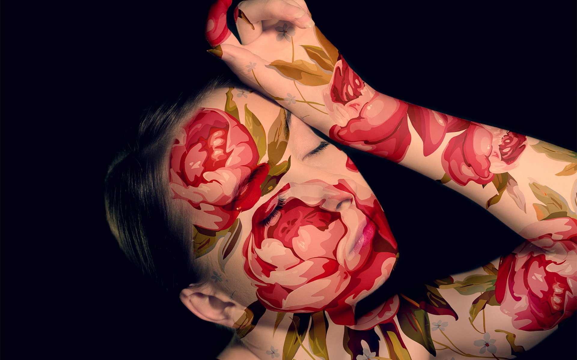 Una ragazza in abiti trasparenti, con i capelli Rossi, tiene in mano un guscio da cui sgorga sabbia magica
