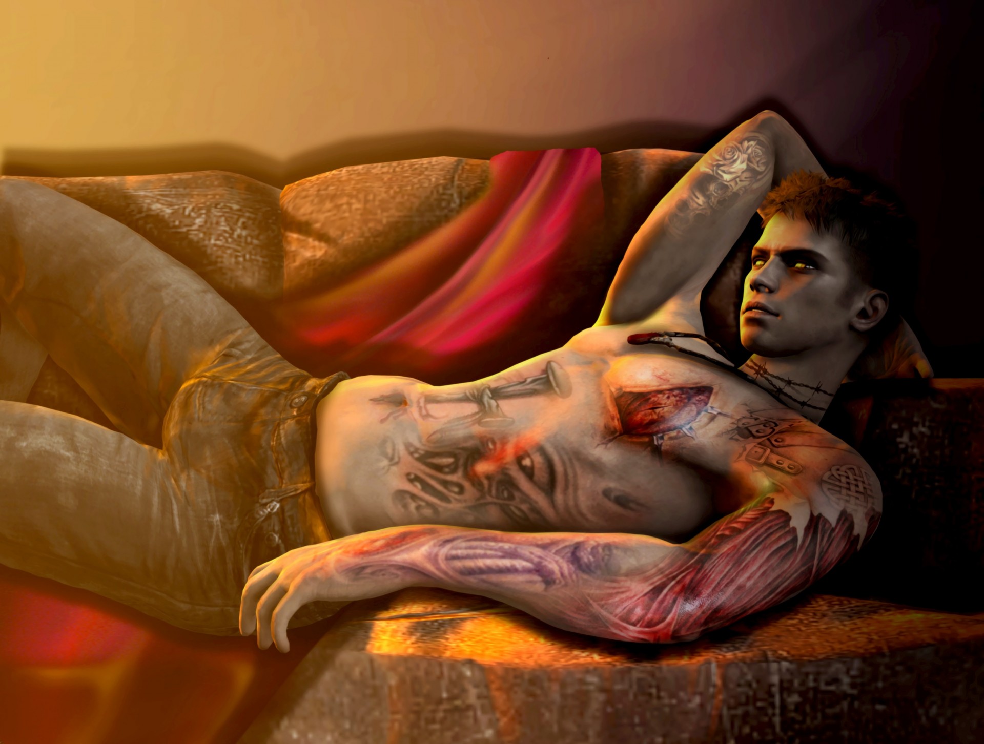 Ragazzo tatuato si trova sul divano