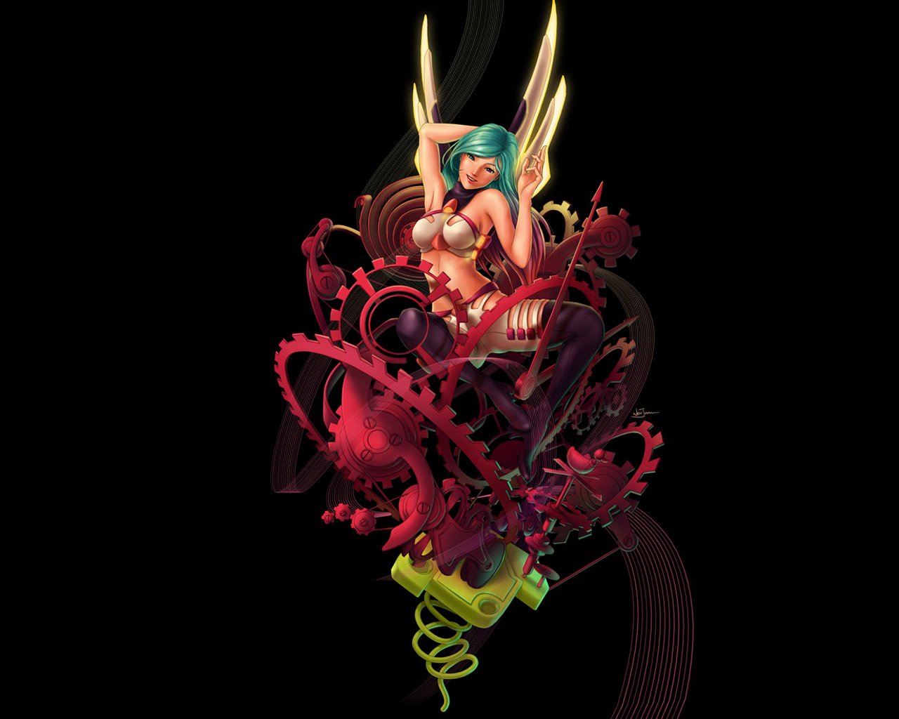 Disegno di una ragazza in stile techno-fantasy