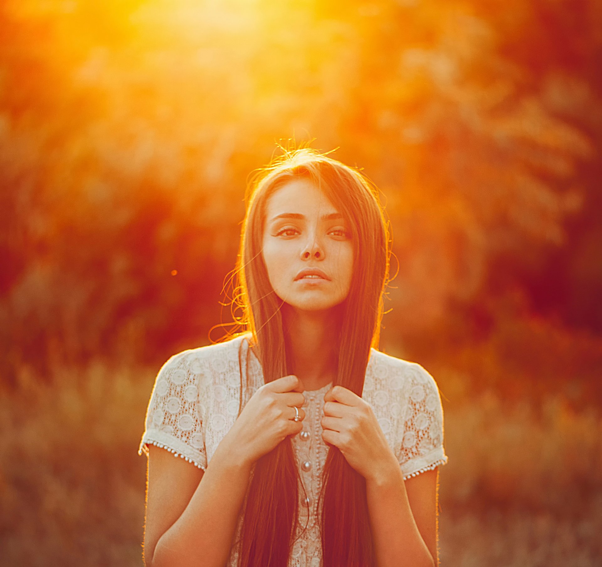 Ritratto di ragazza dai Capelli rossi con illuminazione posteriore