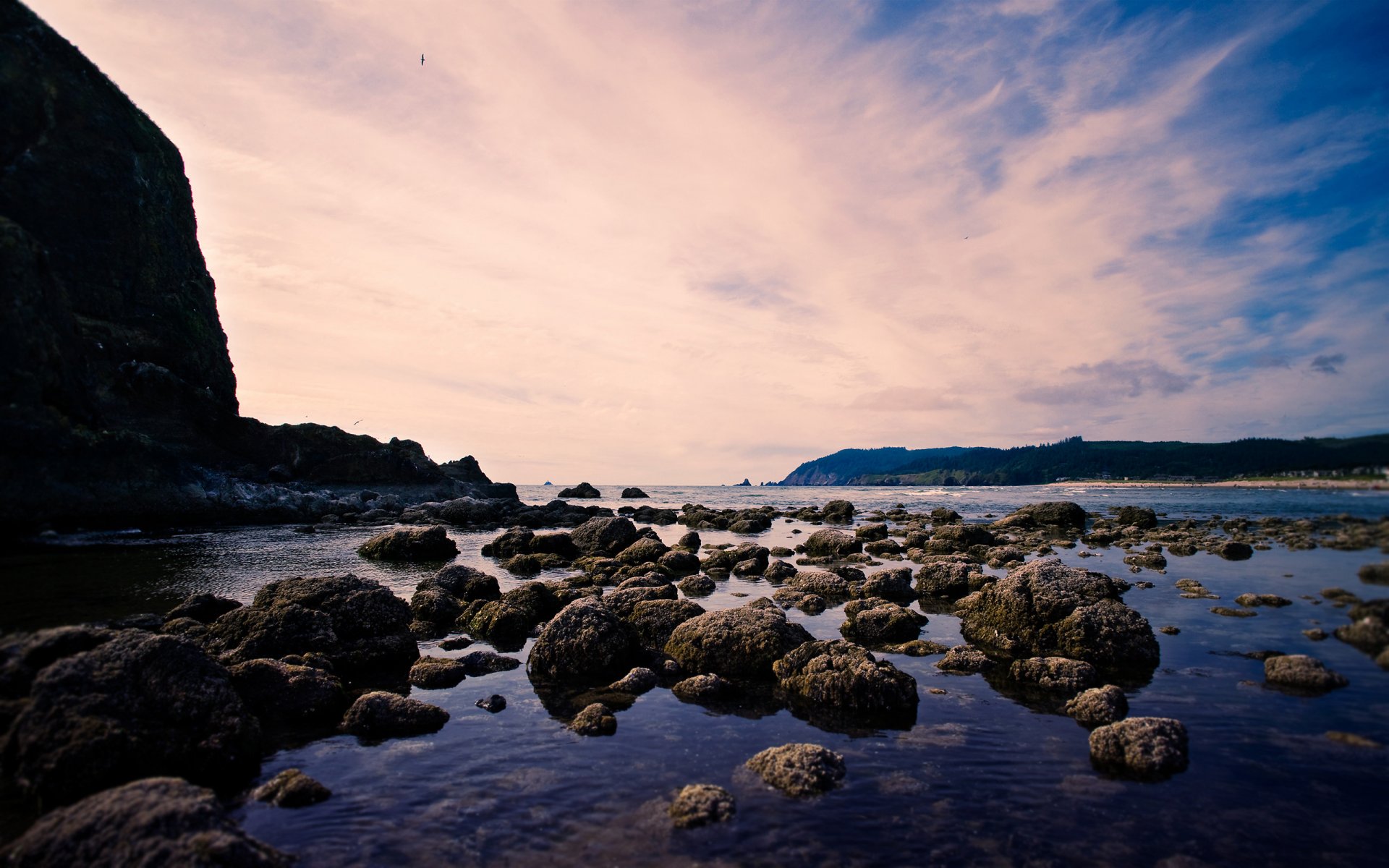 Estetica paradisiaca-mare, pietre, gigli, nuvole