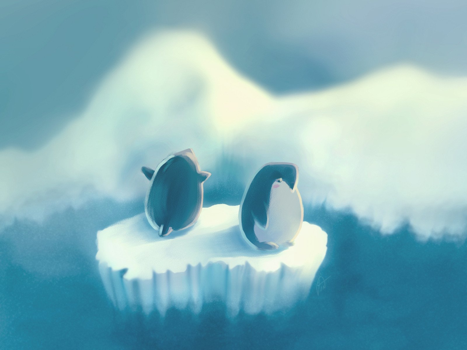 Nella figura, due pinguini si sono sistemati su un lastrone di ghiaccio