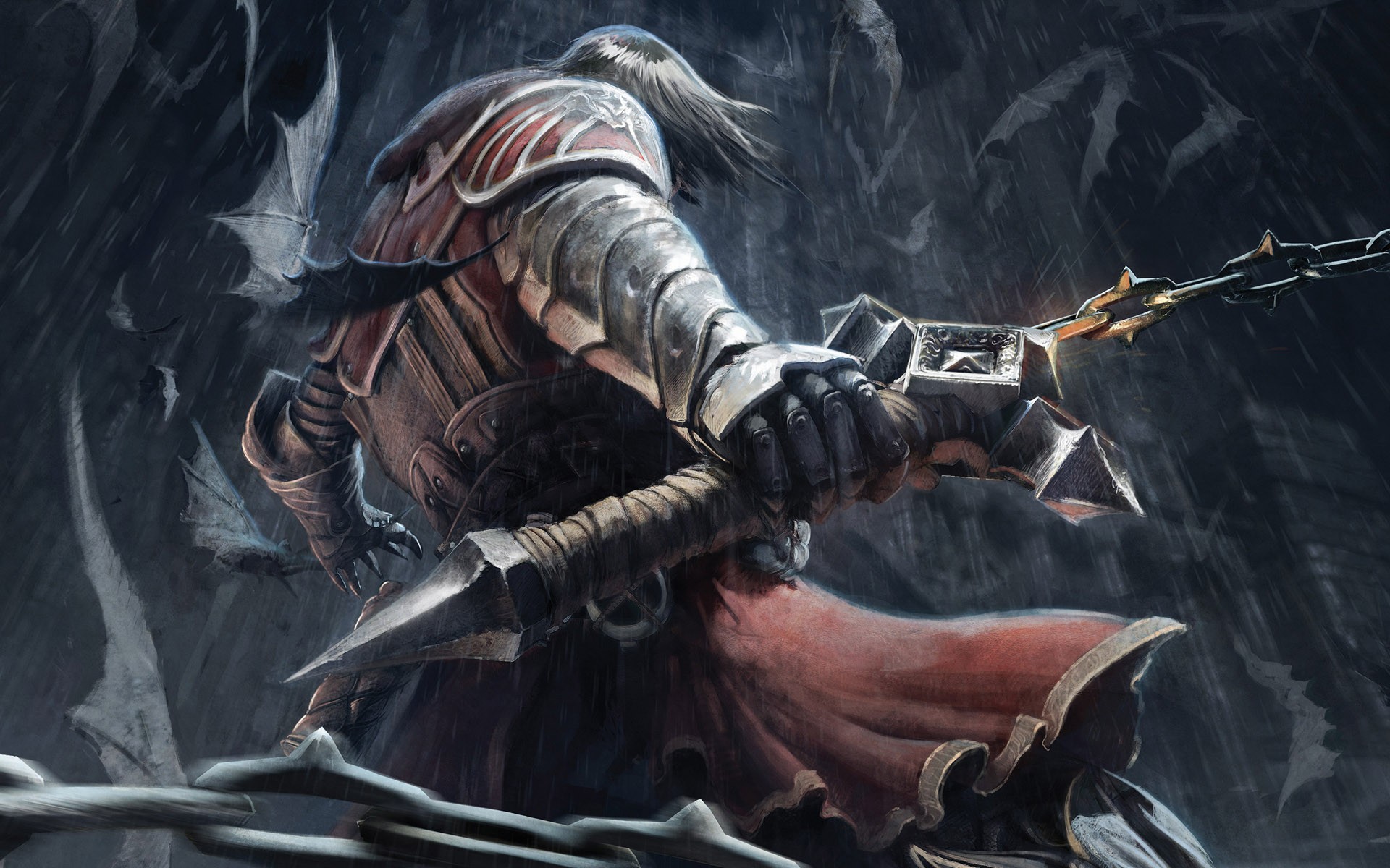 Un guerriero con un'arma si fa strada attraverso i pipistrelli