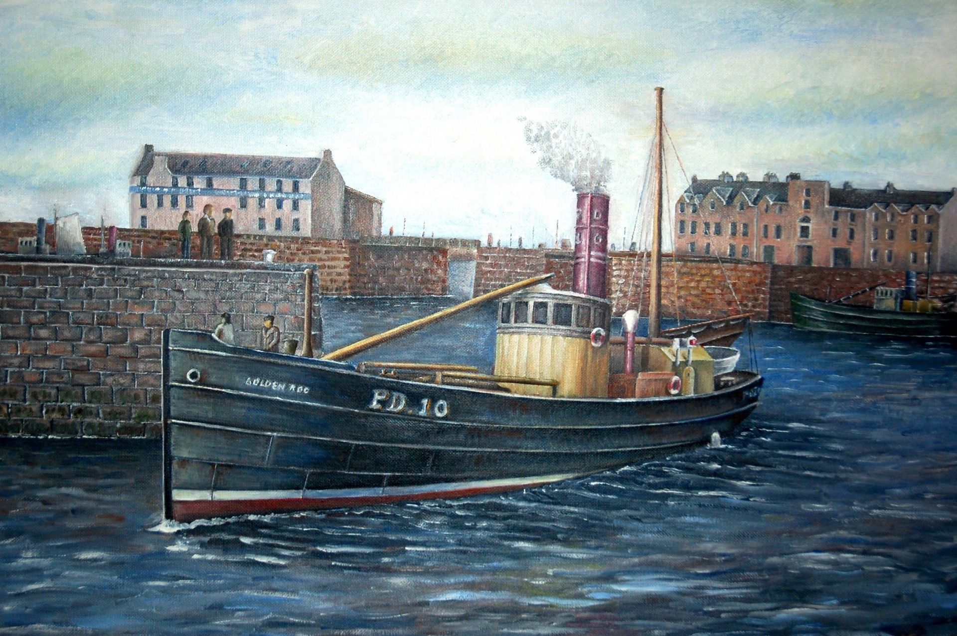 Un porto di pescatori in Scozia in un dipinto ad olio