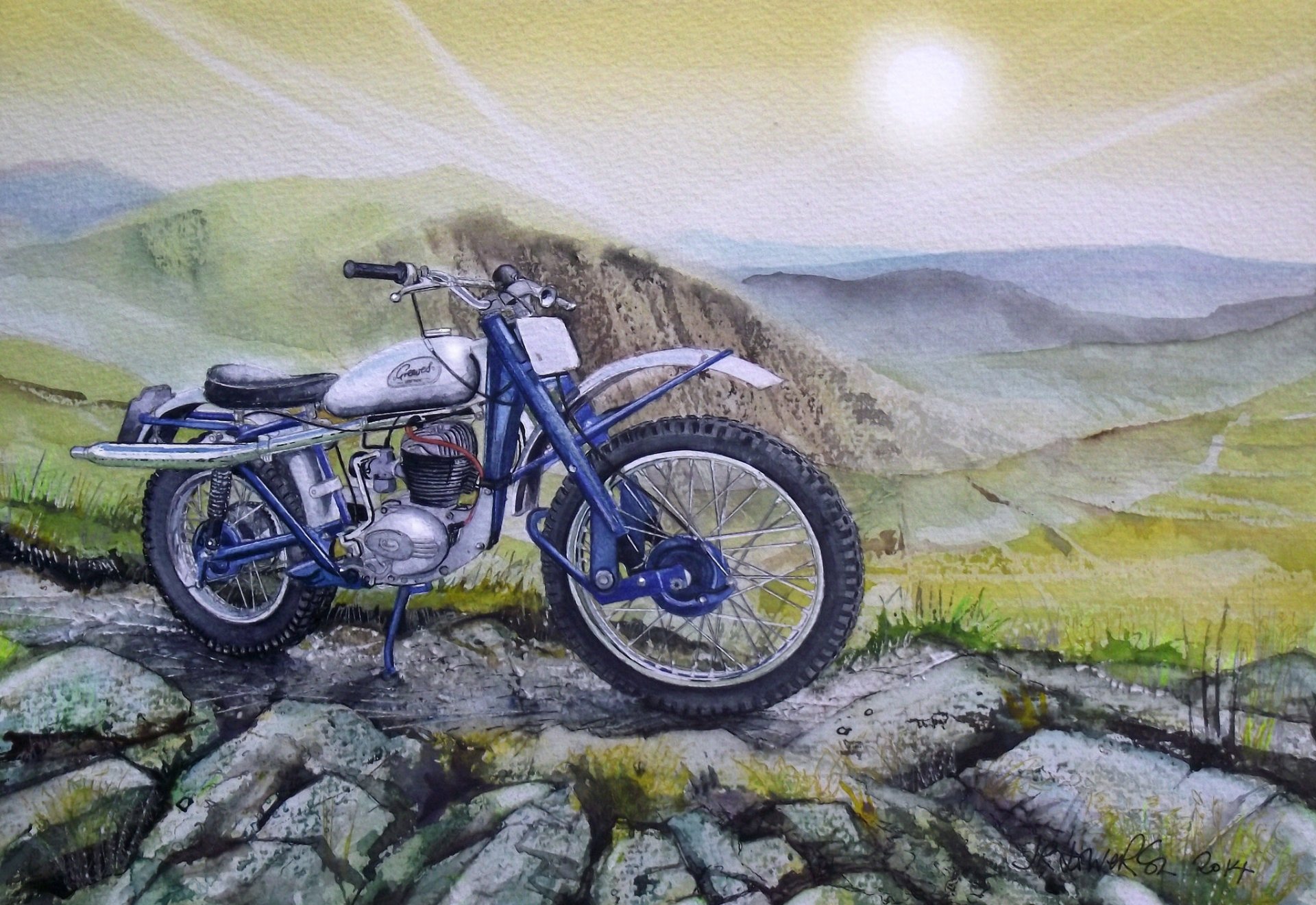 Bella moto modello in montagna