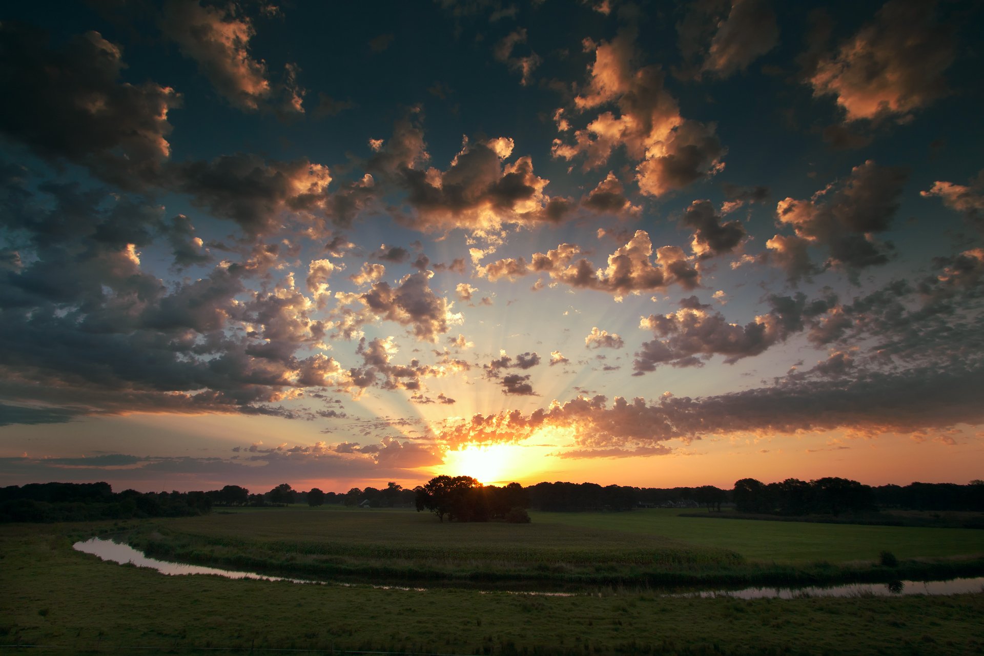 Casa sul prato verde e cielo con una nuvola a forma di cuore
