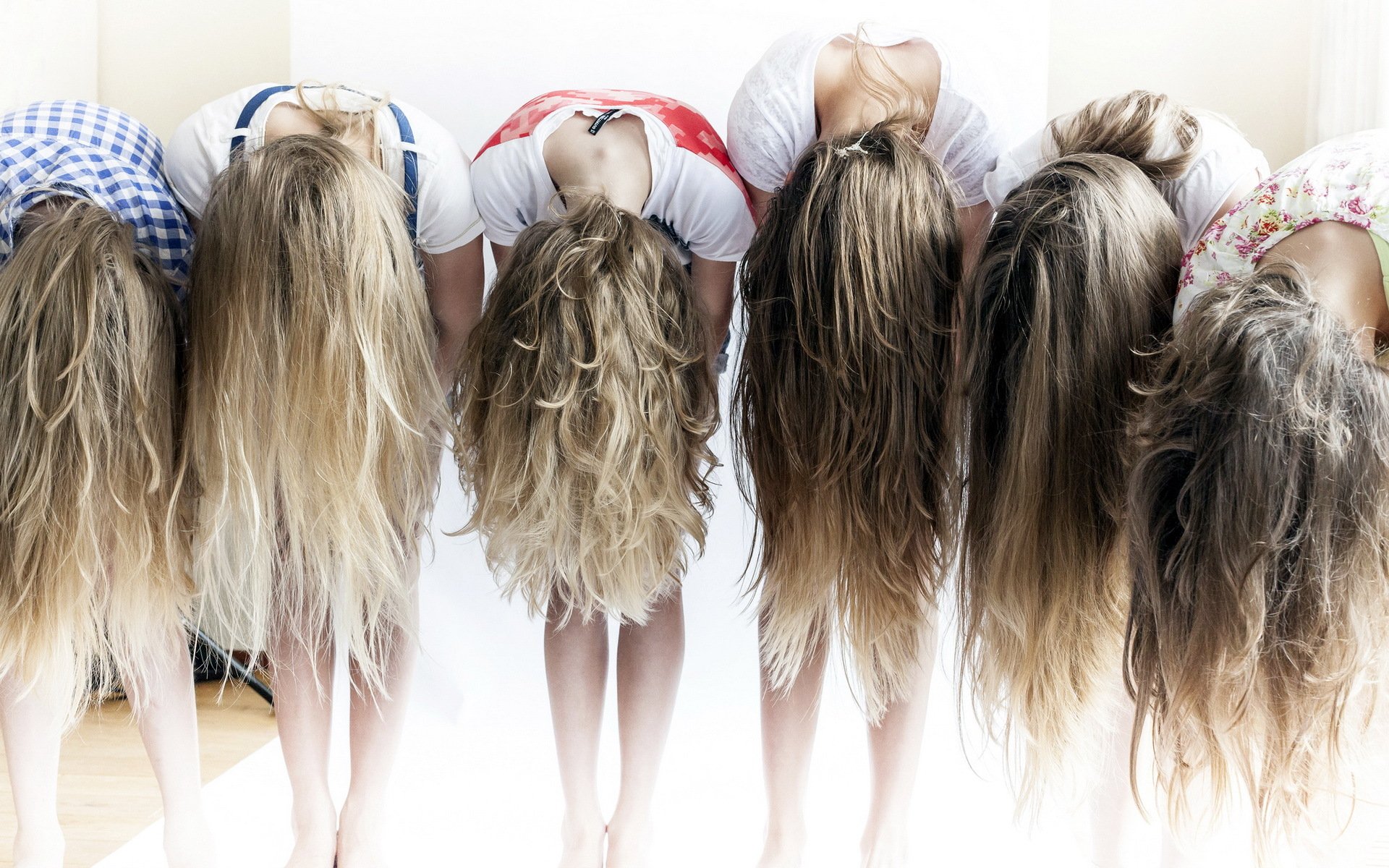Guardando in lontananza una signora dai Capelli rossi con un gatto grigio attaccato ai suoi capelli