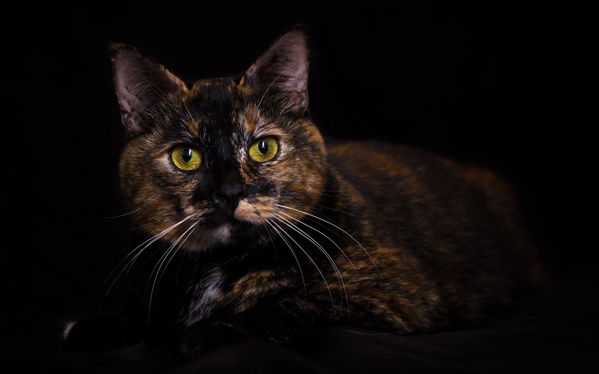Ritratto di un gatto grigio con uno sguardo severo
