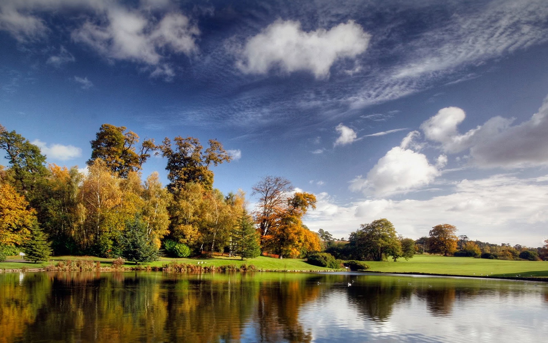 Tramonto panoramico sulle rive del lago della foresta irlandese