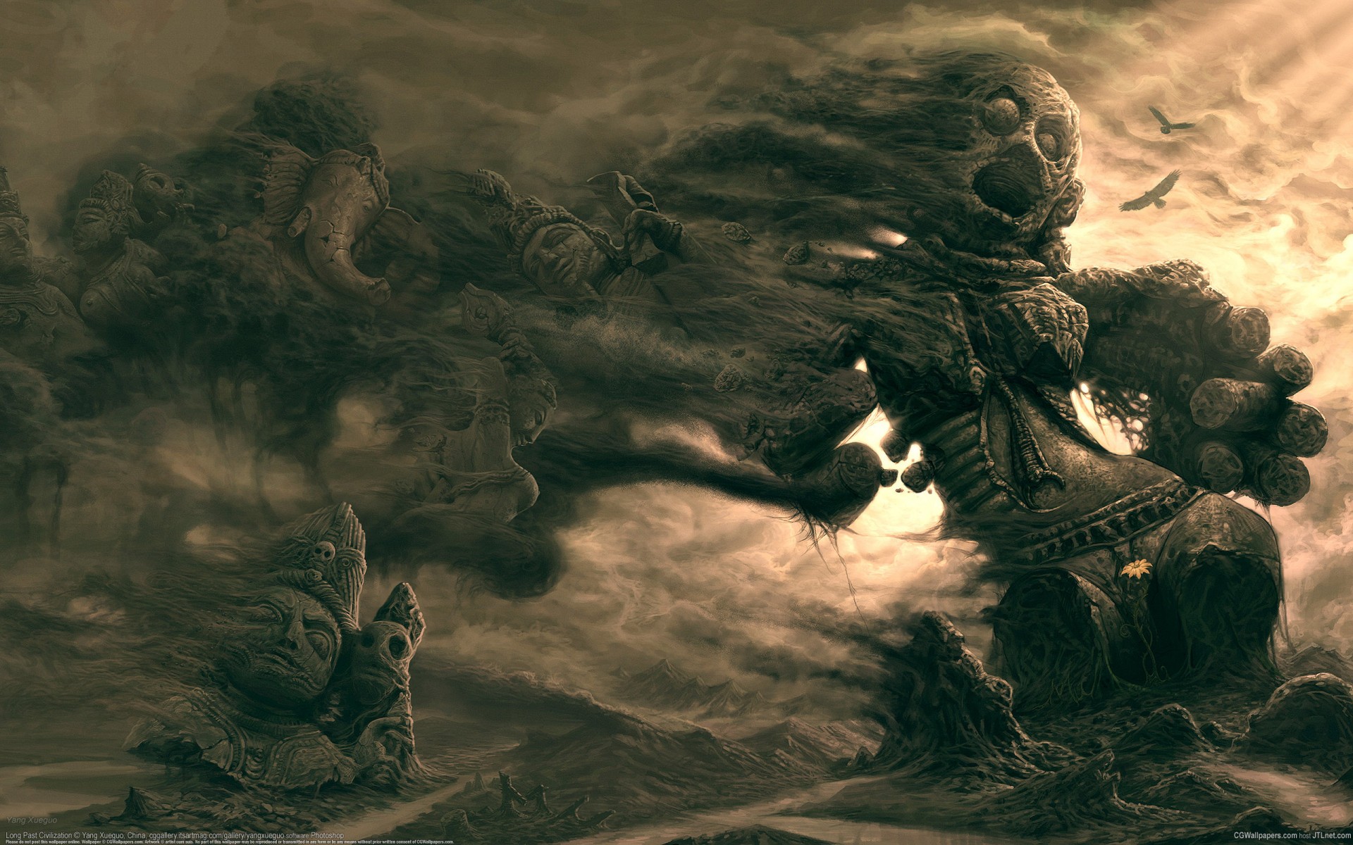 Idoli di sabbia raccapriccianti illuminati dai raggi del sole
