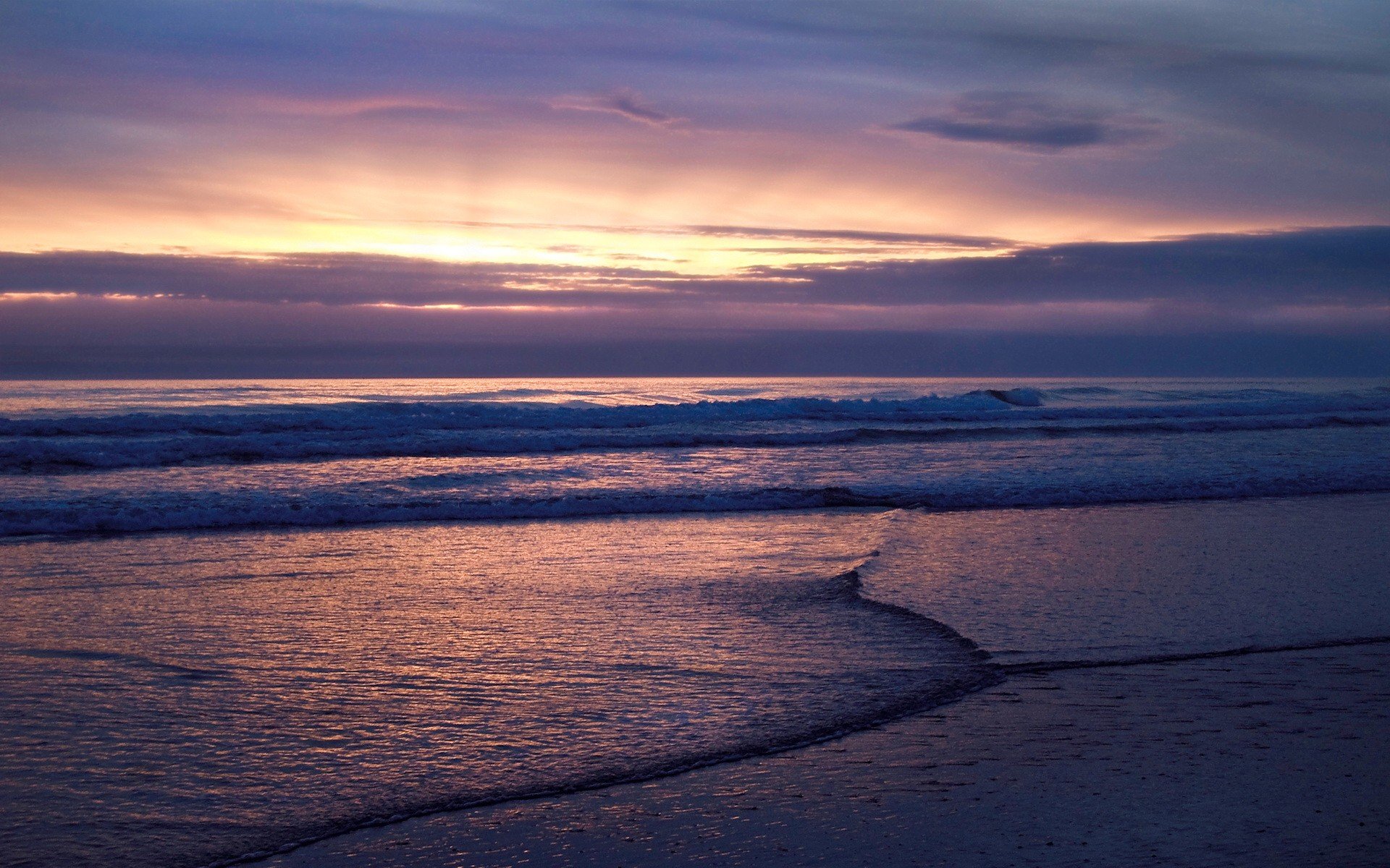 I raggi del sole si fanno strada attraverso le nuvole sopra la città e si riflettono negli spruzzi delle onde che si infrangono sulle rocce