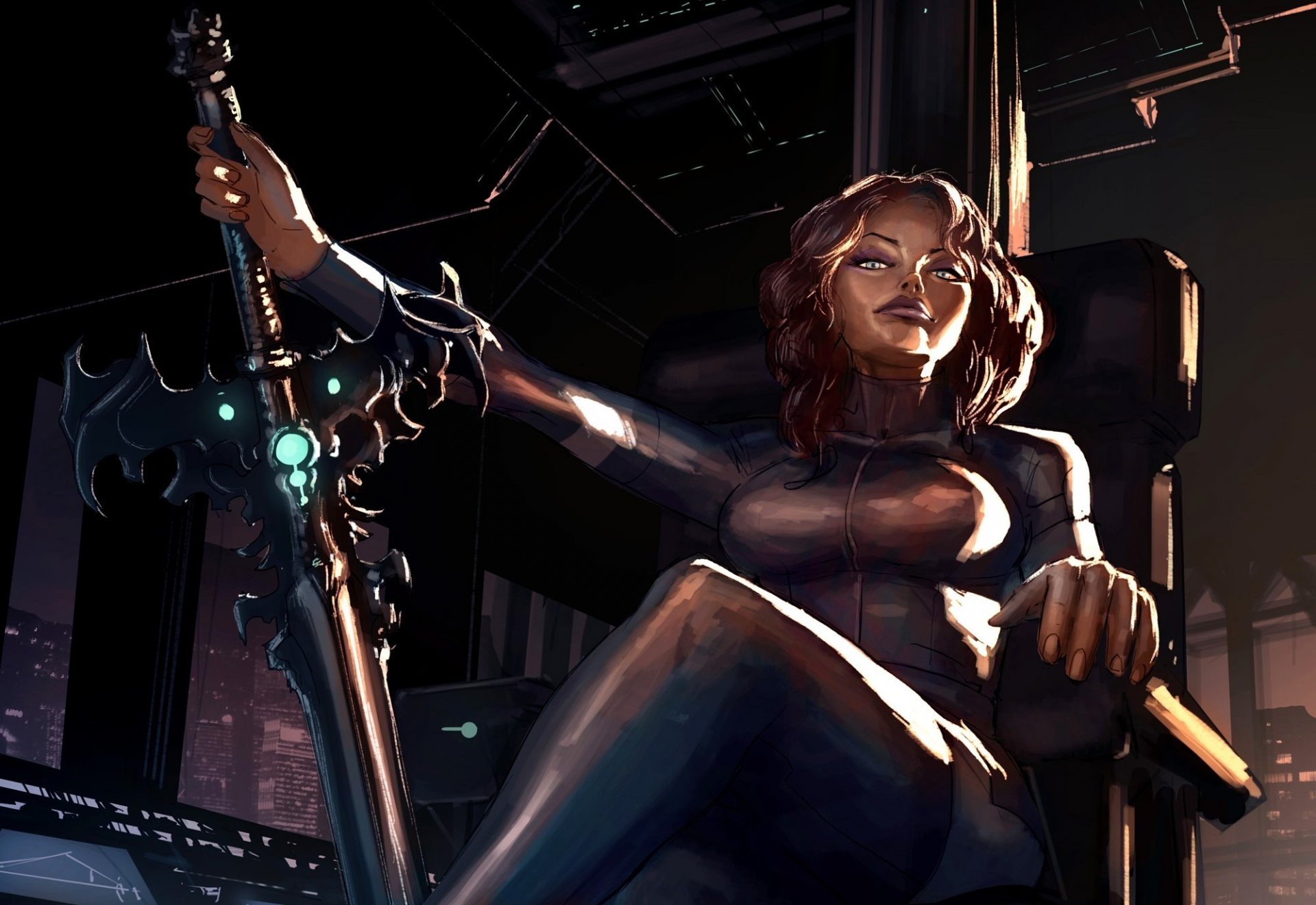 Art Art, ragazza in posa seduta, decorazione sul collo iveter sviluppa una sciarpa insanguinata, risveglia la fantasia
