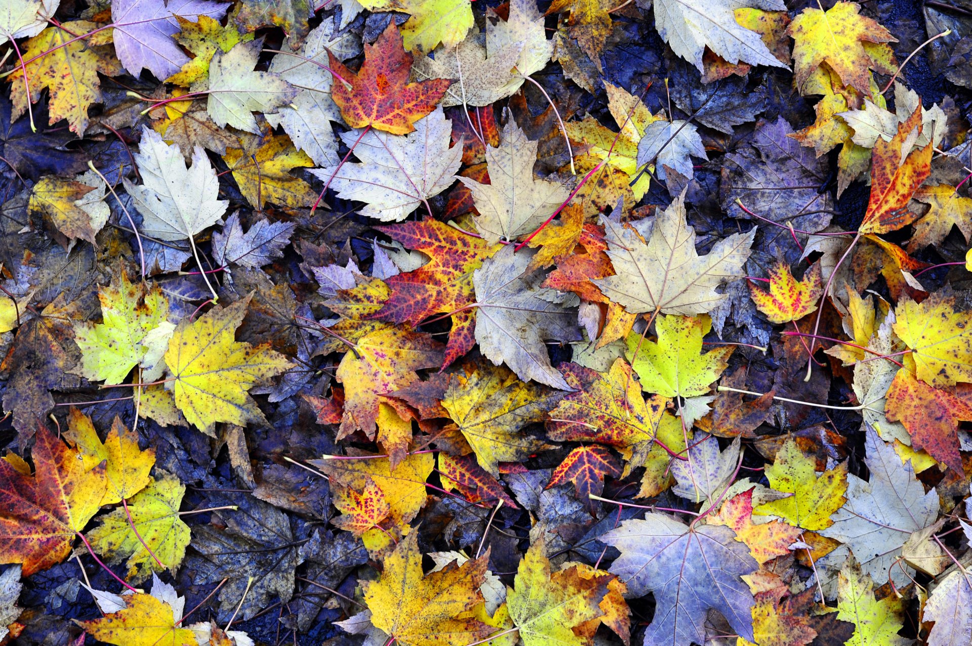 Fogliame autunnale a cuneo sul terreno