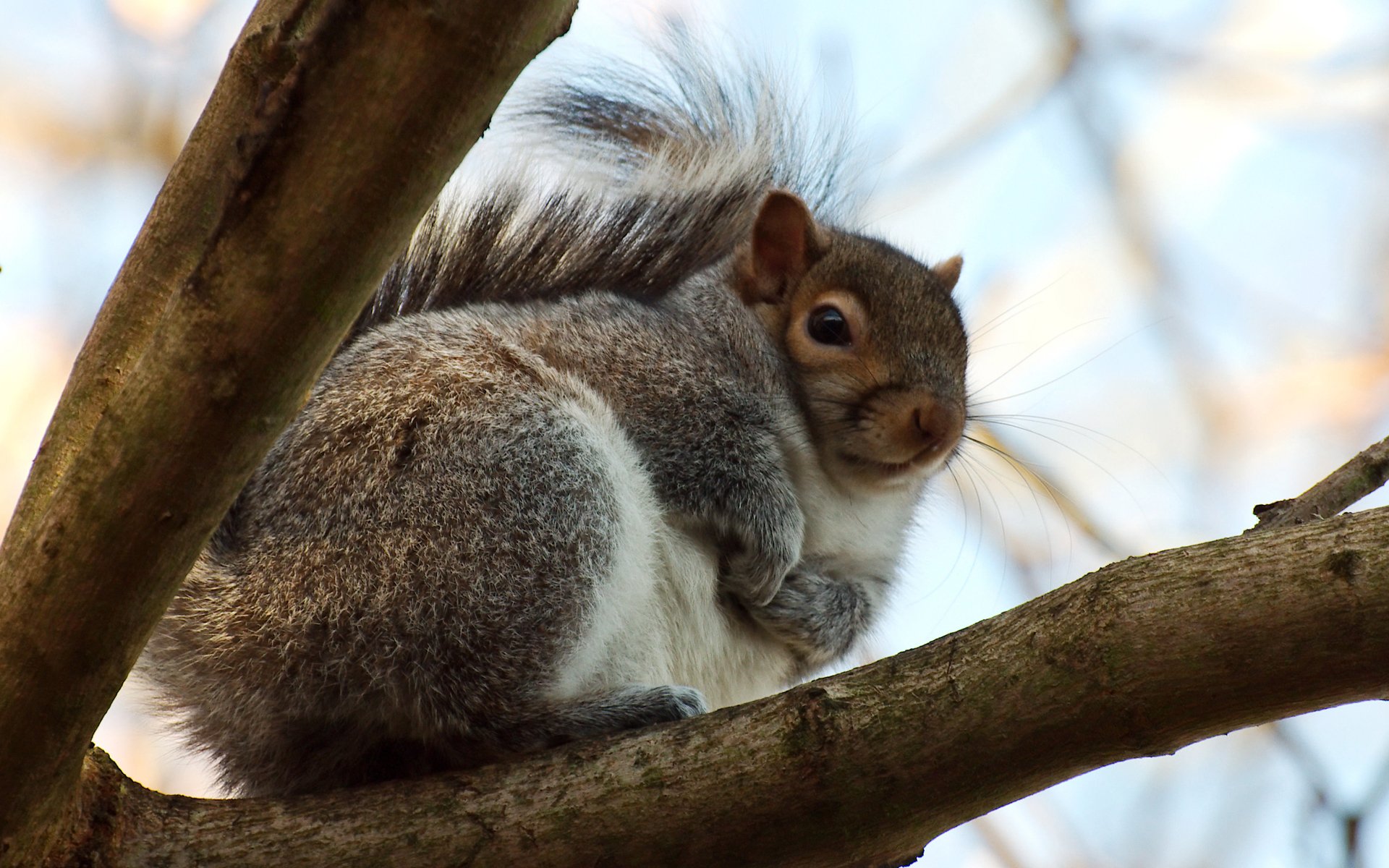 Scoiattolo con una coda lussureggiante sullo sfondo dell'inverno