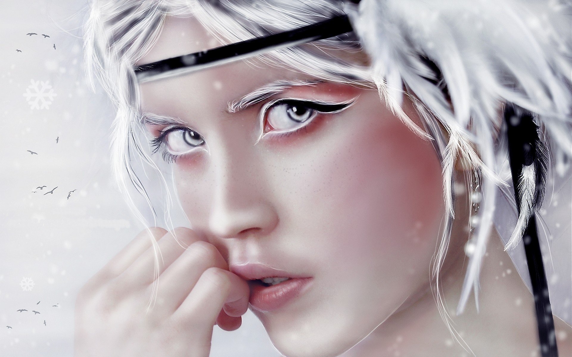 Ragazza con lo sguardo dell'uccello ed i capelli bianchi