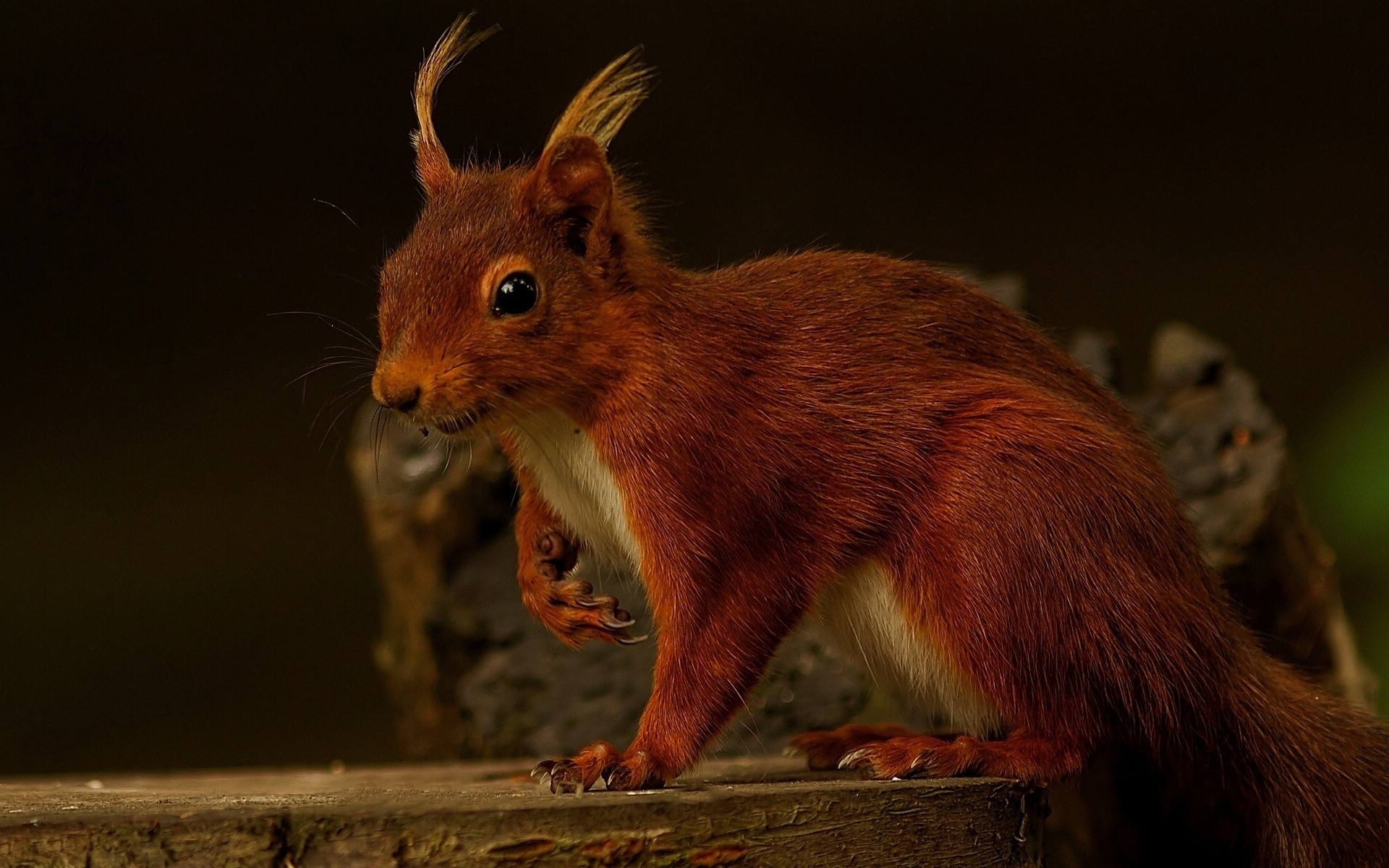 Scoiattolo da un cartone animato in un cappello di Capodanno
