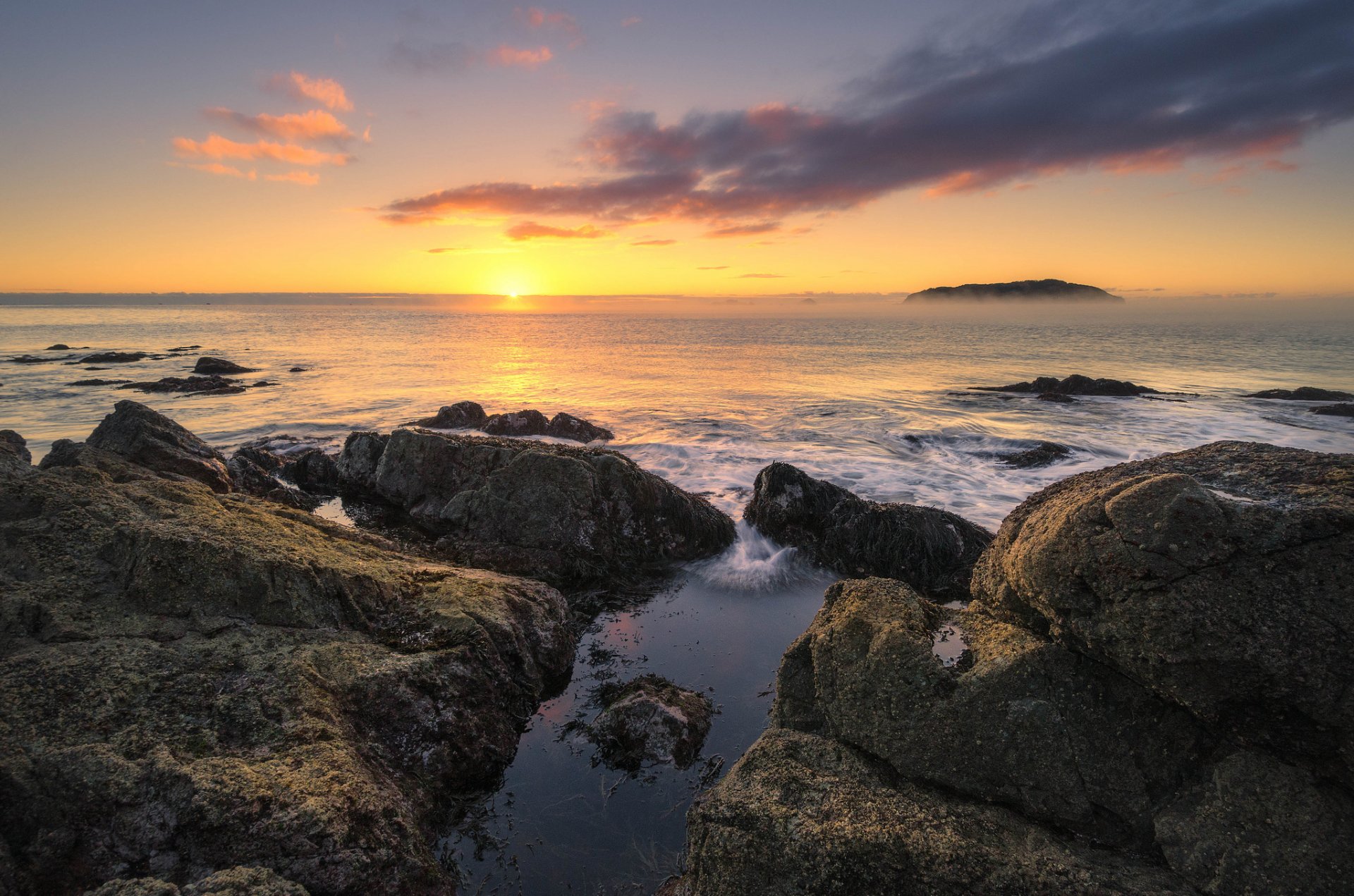 Alba vicino all'oceano su una spiaggia di sabbia soleggiata